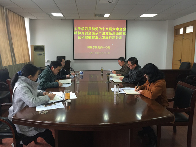 国旅学院党委中心组召开《中共安徽省委关于学习贯彻党的十八届六中全会精神开创全面从严治党新局面的意见》和《安徽省五大发展行动计划》专题学习研讨会