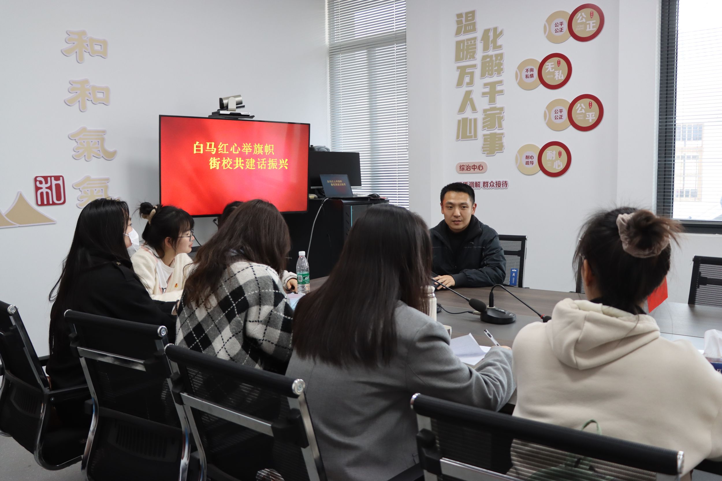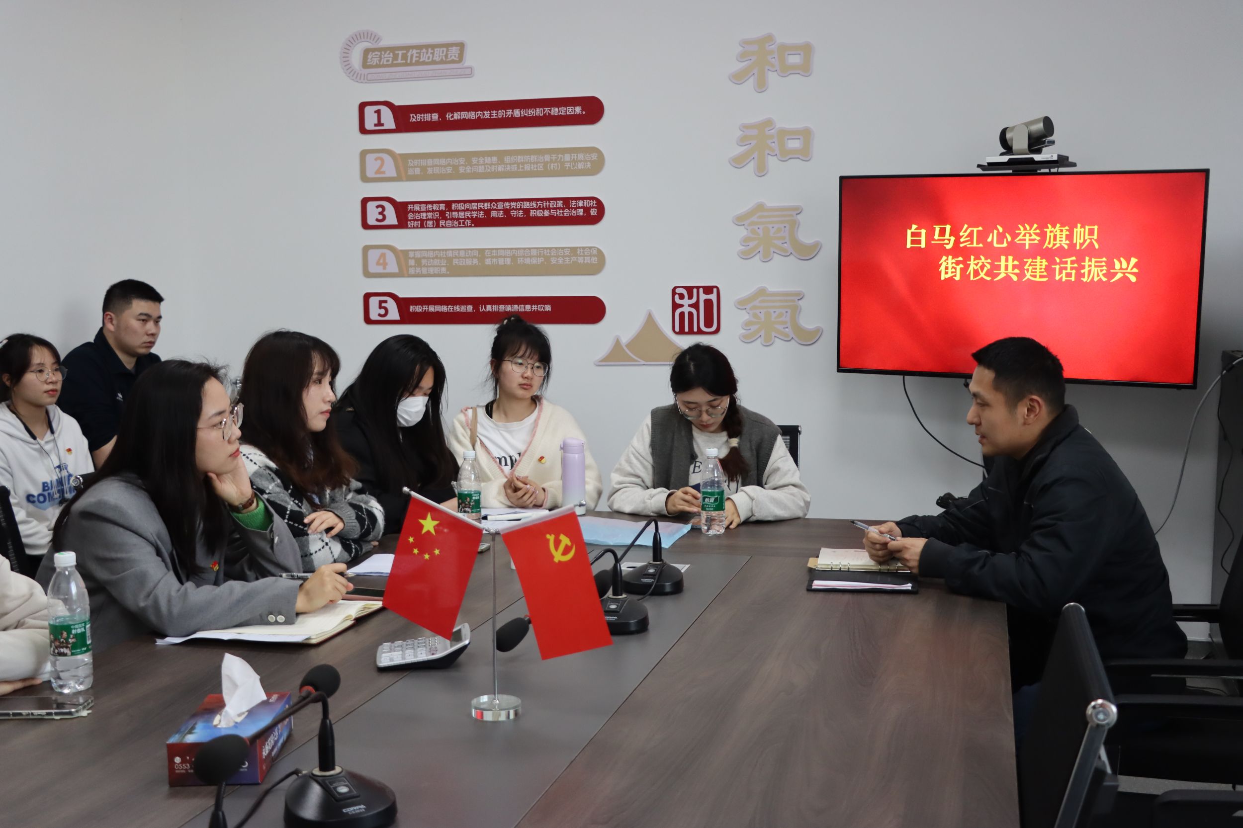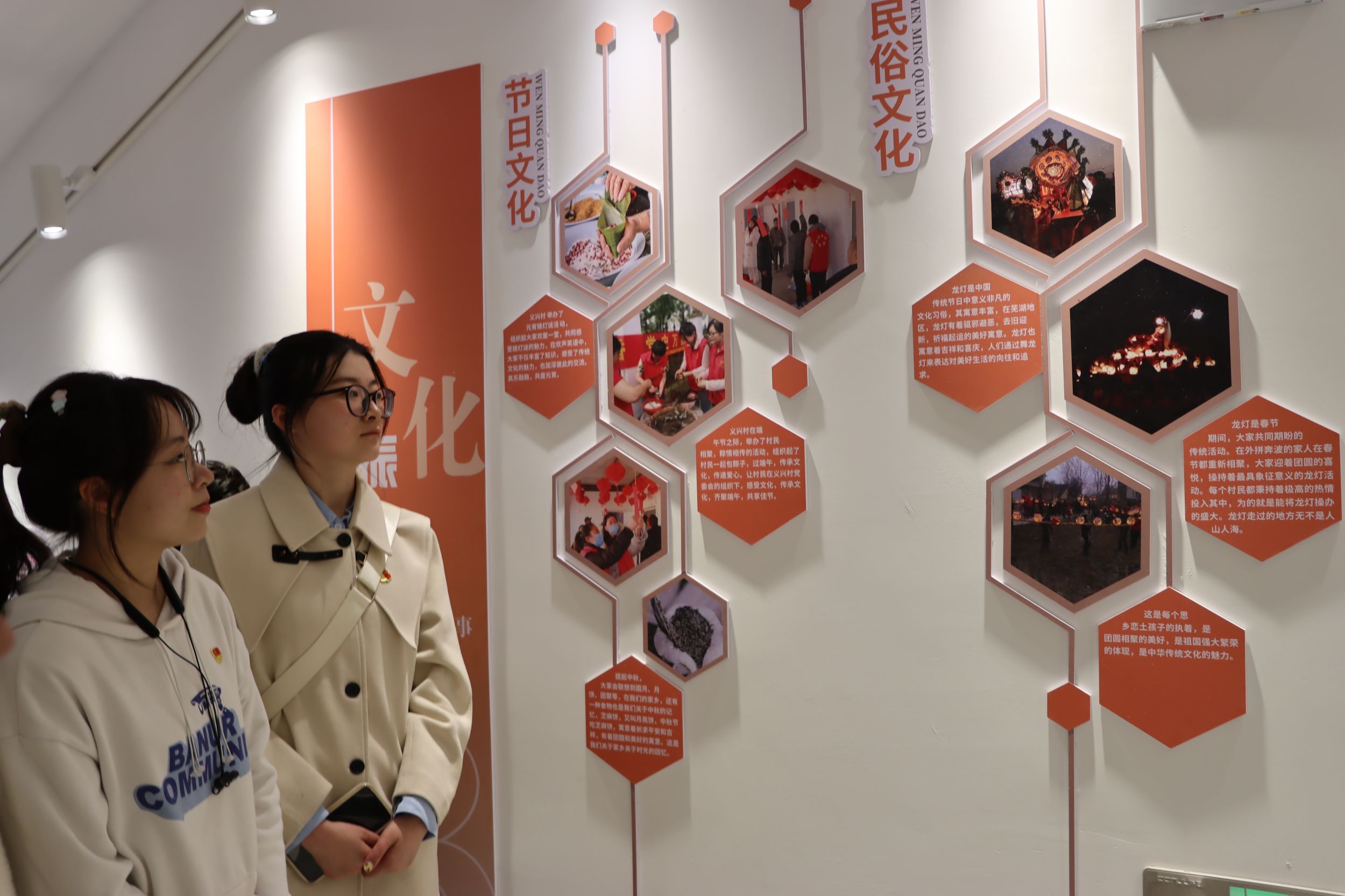 搭建融合“大平台”,画好联建“同心圆”。义兴村党群服务中心工作人员施昱昊带领同学们参观了义兴村党群服务中心。并详细介绍了义兴村在产业振兴、人才振兴、文化振兴、生态振兴、组织振兴五方面的发展情况。