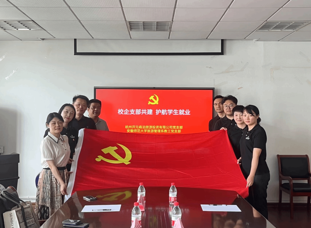旅游系教工党支部与杭州开元森泊旅游投资有限公司党支部在学院四楼会议室开展校企支部共建活动。