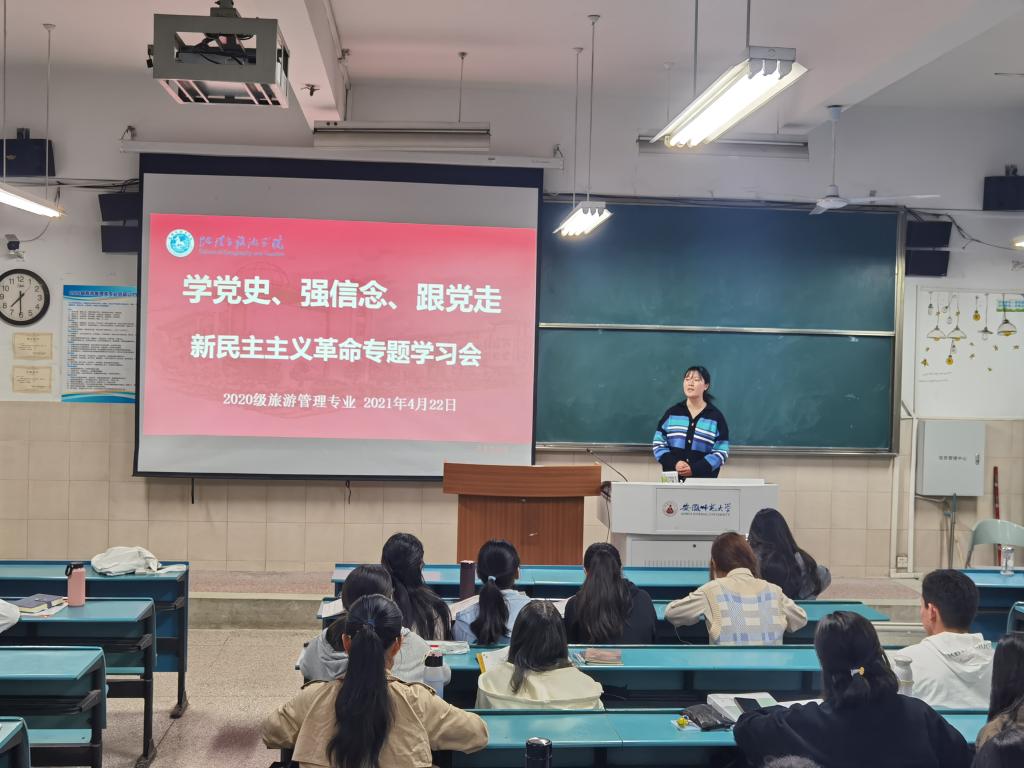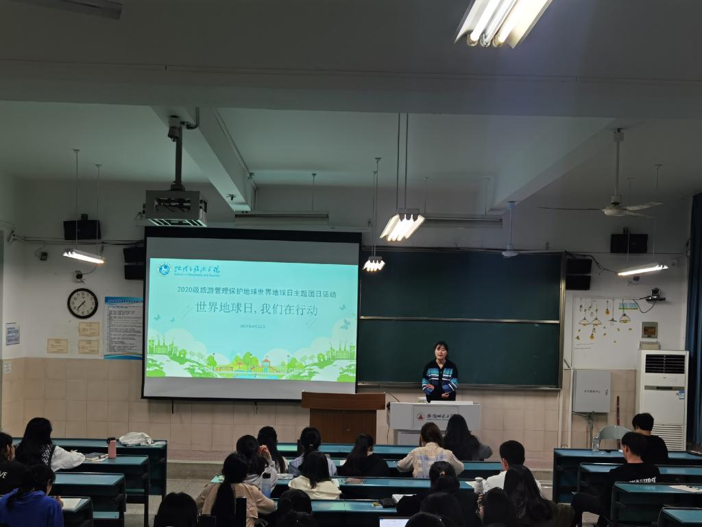 赵佳慧 孙云峰)为加强班级班风建设,学好党史党章,同时迎接第52个地球日的到来。4月22日晚7点,2020级旅游管理专业于行知楼4号楼203教室召开“学党史、强信念、跟党走”专题学习会暨“保护地球”世界地球日主题团日活动。此次活动由团支部书记徐雨菲主持,2020级旅游管理专业全体同学参加。