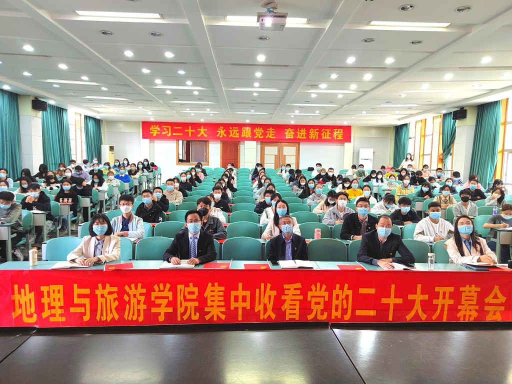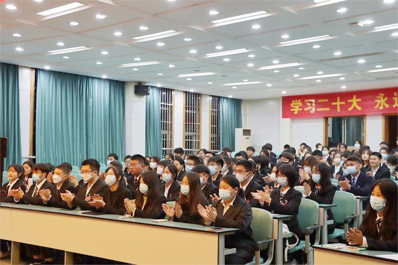 积极组织全院师生收听收看大会盛况,学院领导班子、学生党支部书记与学生党员、团员代表等100多名师生一起集中收看党的二十大开幕会现场直播,认真聆听记录,现场反响热烈,不时响起阵阵掌声。会场内党旗飘扬、红旗招展,会场后方悬挂的“学习二十大 永远跟党走 奋进新征程”红色条幅表达了师生们对深入学习领会贯彻党的二十大精神,踔厉奋发、勇毅前行的坚定信心和决心。教工党支部、各班级团支部同步组织开展线上线下收听收看活动。