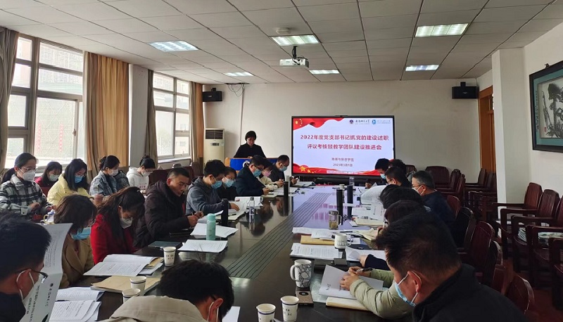 在学院行政楼三楼会议室召开2022年度党支部书记抓党的建设述职评议考核暨教学团队建设推进会,学院党委委员、全体党支部书记和各专业负责人参加了会议。会议由学院党委书记贾冠忠主持。