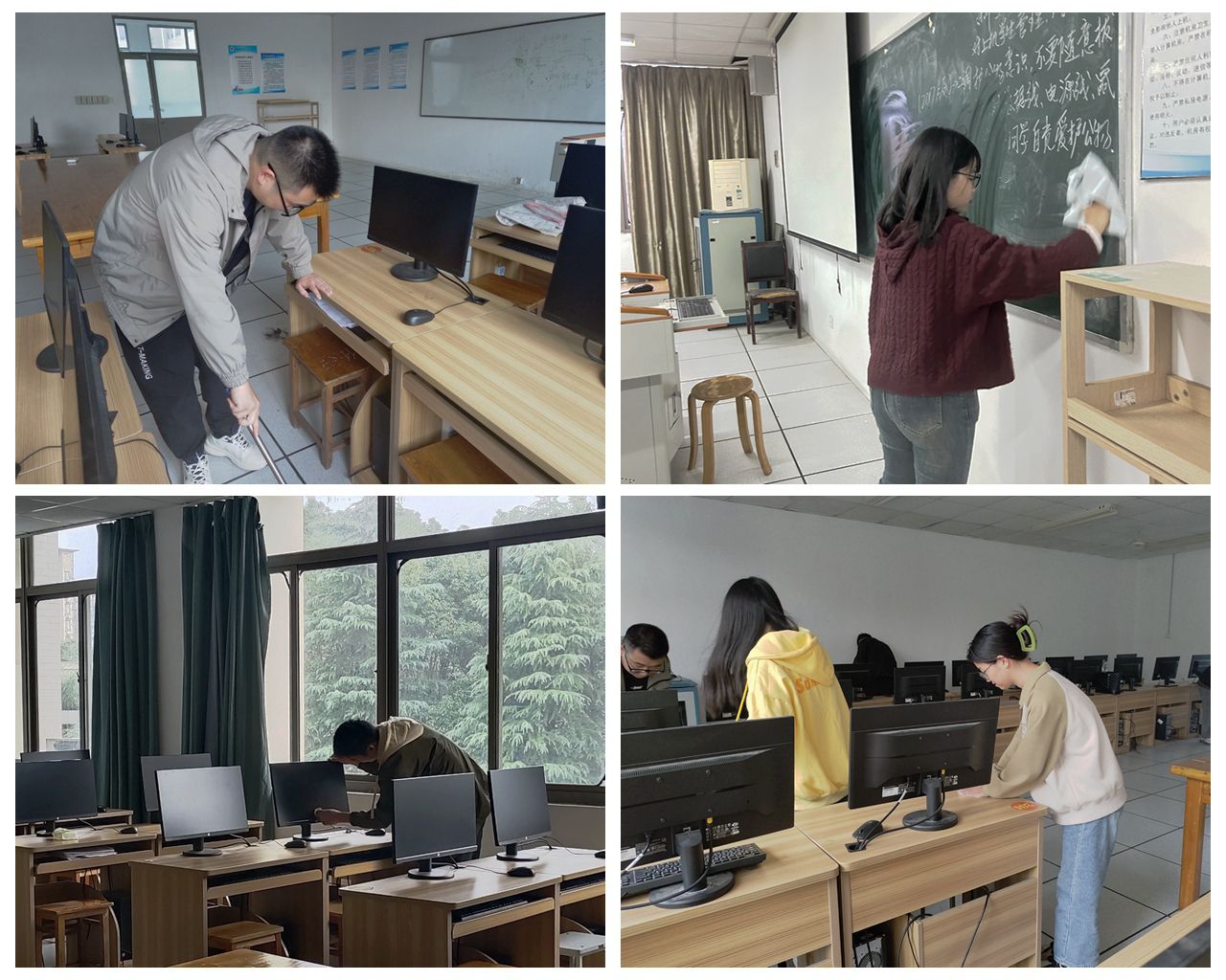 分党校组织开展了主题为“爱师大,共奋进”——文明校园创建暨绿色志愿服务活动,院第15期学生党员教育培训班学员积极参加,为校园文明创建贡献力量。本次实践活动主要围绕实验楼教室开展地面清扫、窗户清洁、讲台整理等活动。同学们忙得不亦乐乎,教室在同学们的辛勤劳动中焕然一新。此次实践活动把学习理论知识的教室变成了劳动教育的课堂,学生亲身参与其中,在实践中收获劳动成果,感悟劳动意义,切身体会劳动最美丽、奋斗最幸福的意义,收获颇丰。
