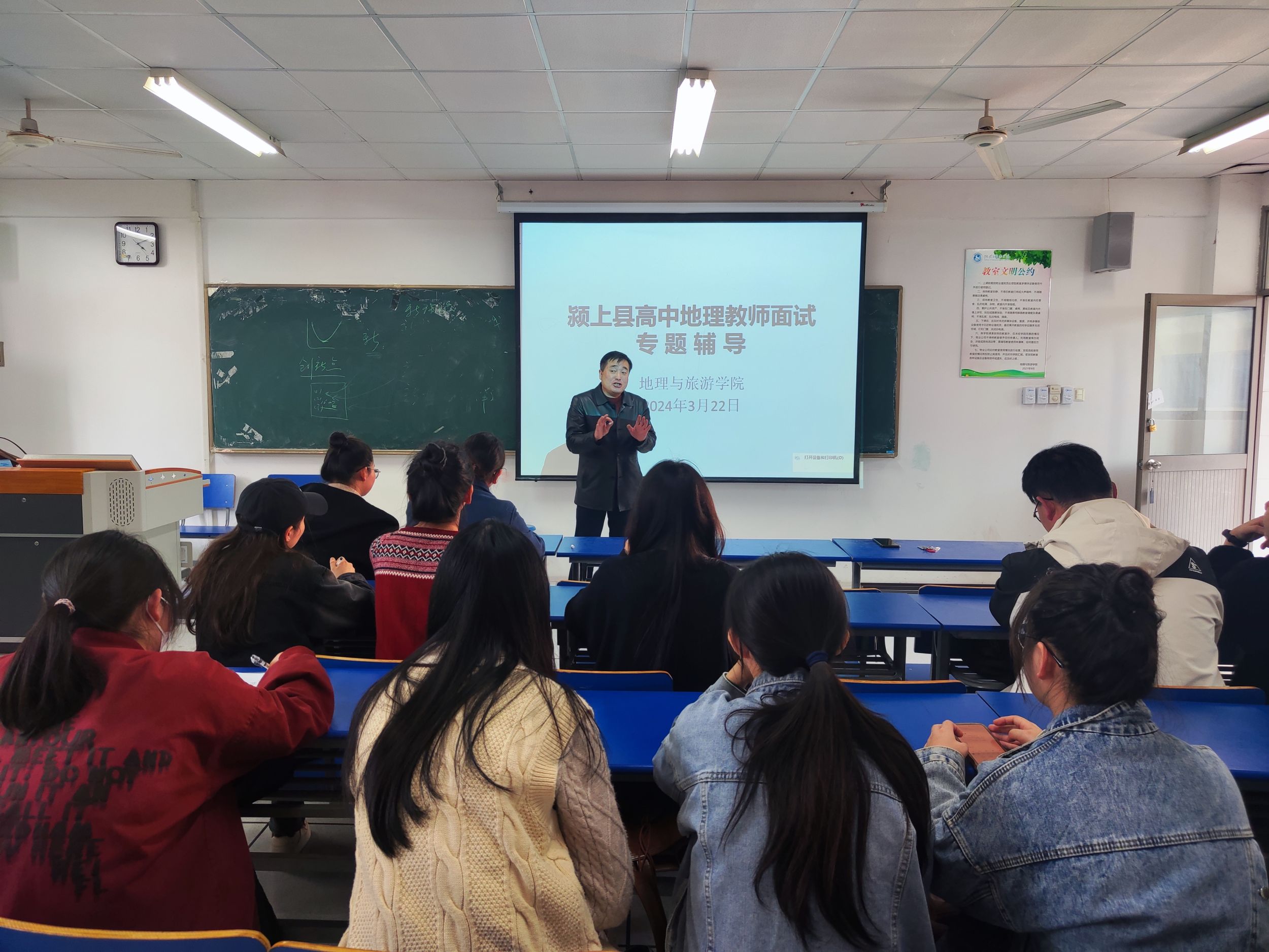 举行教师面试专题辅导,为拟参加颍上县高中地理教师面试的同学们进行指导。