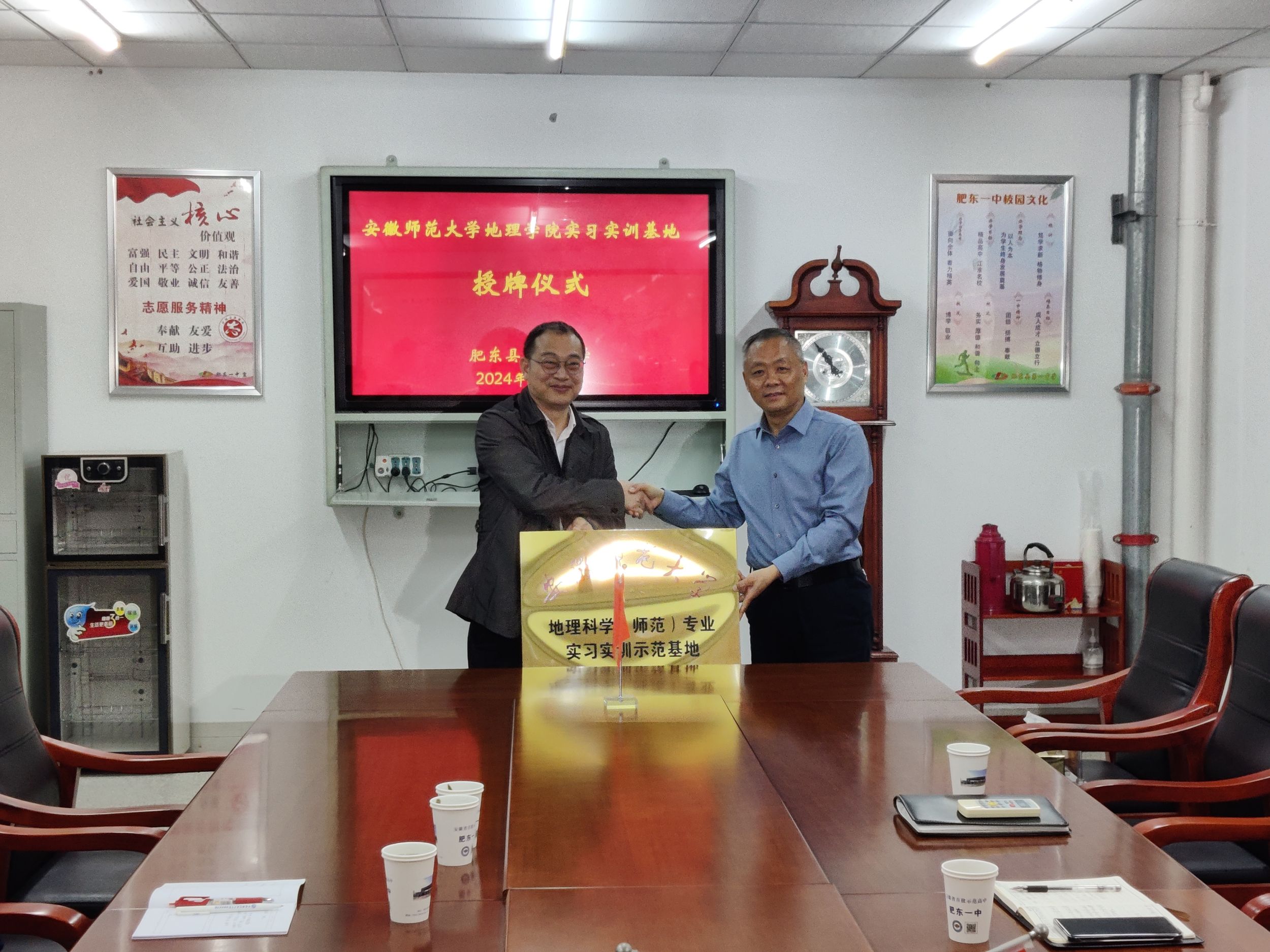 李汪根、贾冠忠等一行分赴合肥四中、肥东一中、繁昌一中调研检查实习开展情况,并与实习相关单位负责人、实习生开展座谈交流。座谈会上,实习生代表依次就一个月以来的实习内容、体会感受及实习收获等进行发言。实习单位相关负责人就学校发展概况、教育实习总体情况进行了简要介绍,并对学生的实习表现给予了高度赞扬。李汪根向实习单位对我校教育实习工作的支持和关心表达感谢,并介绍了我校基础教育振兴行动计划的内容。贾冠忠寄语实习生,要严格遵守实习单位的纪律和要求,把安全放在第一位,在实习工作中提升能力、努力成长,学有所悟、学有所得。随后,李汪根、贾冠忠向合肥四中、肥东一中、繁昌一中进行“地理科学(师范)专业实习实训示范基地”授牌。