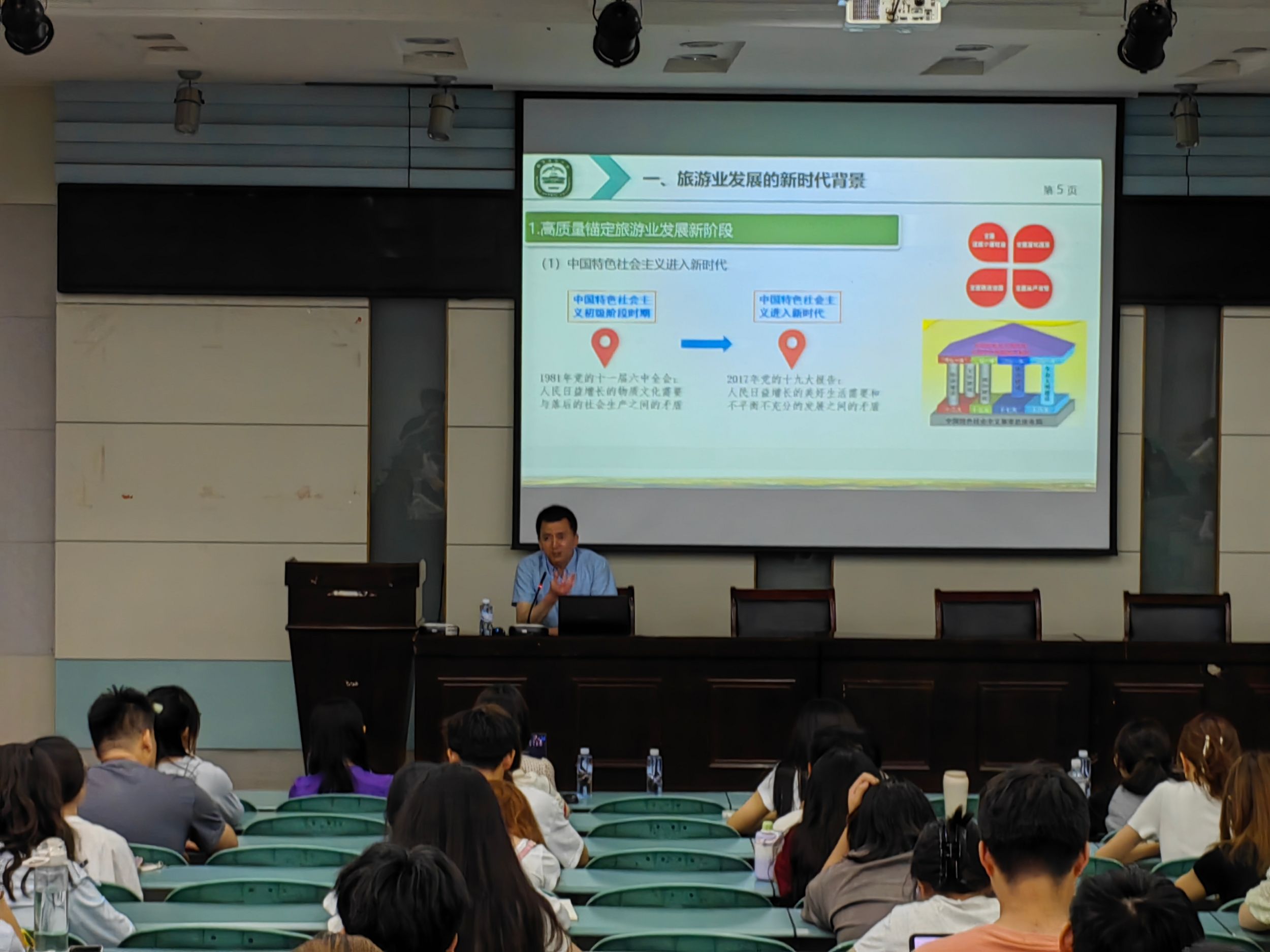 学子作题为《新时代游客需求变迁与旅游产业高质量发展》专题讲座,旅游管理专业教师王咏、王莉,辅导员齐小学,2023级旅游管理专业本科生和部分研究生参加。专题讲座由旅游管理专业教师杨效忠教授主持。