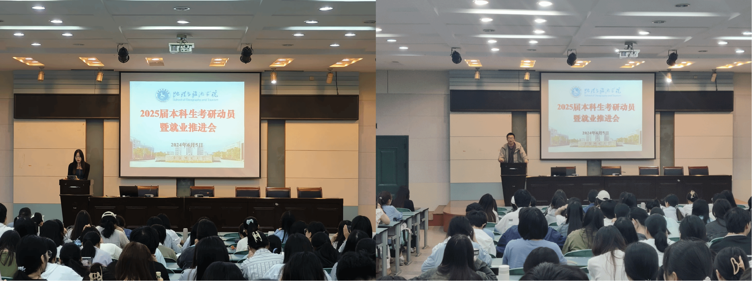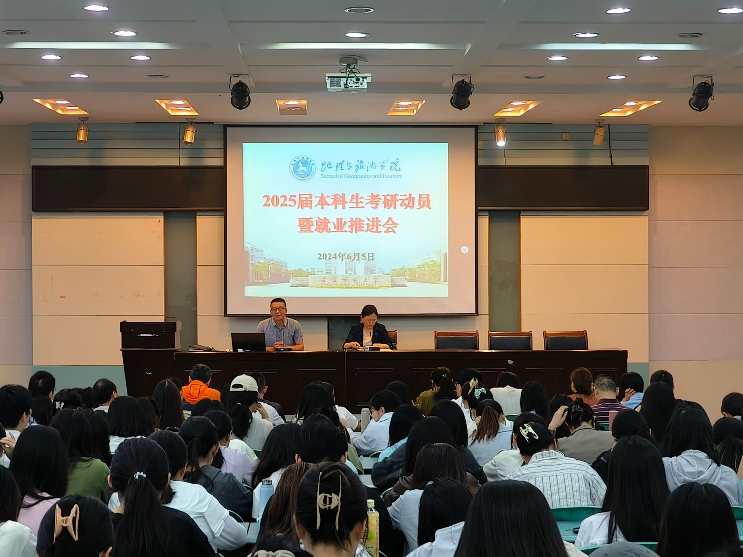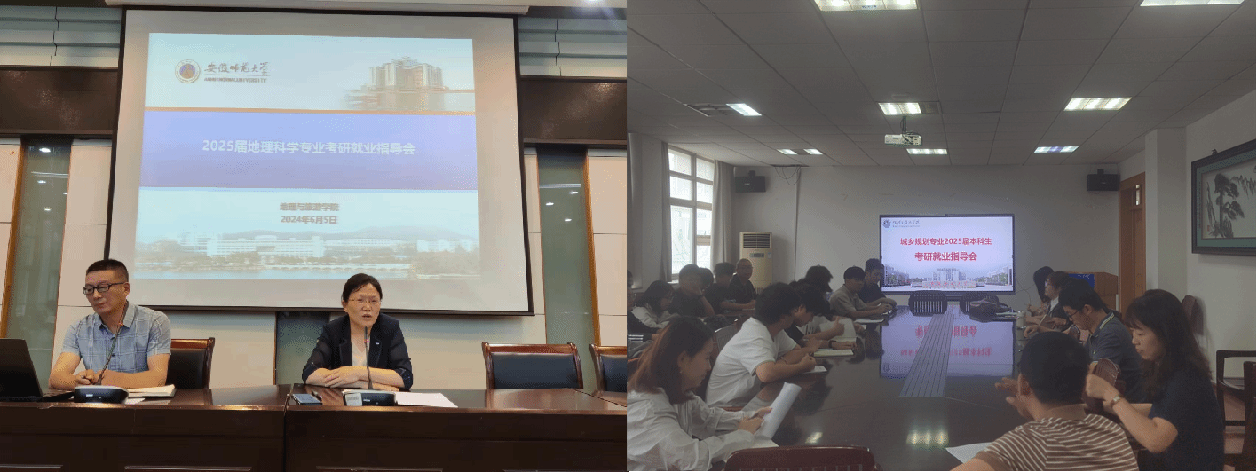 全面落实,群策群力“出实招”。学院分专业开展了2025届考研动员暨就业推进会,会上,学院院长方凤满强调,同学们要认清考研就业形势,做好就业与考研的理性选择;要科学规划,自觉提高自身的竞争力和能力,充分做好考研就业的准备工作;要端正心态,不要过于焦虑,不论是考研还是就业,都要认真准备,全力以赴。地理科学专业负责人朱永恒、地理信息科学专业负责人宋立生、城乡规划专业负责人韩会然等结合近几年考研数据讲解考研注意事项,引导同学们根据自身实际情况,选择合适的院校和专业,持之以恒,科学备考。胡春生等教师代表分别从自身求学经历、考研学校专业选择、计划制定等方面进行详细分析,详细解读了地理学科评估C+及以上的院校师资力量、研究领域、往年研考招录情况等,为学生考研择校择专业提供参考依据。