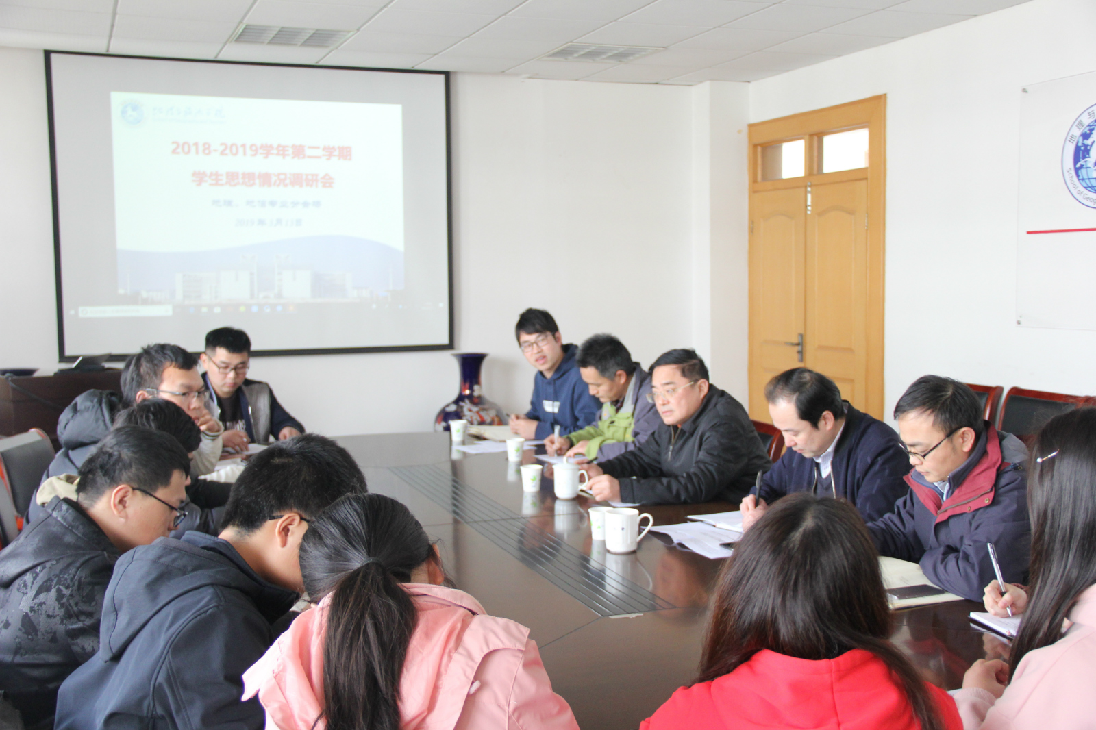 召开新学期学生思想调研师生座谈会。学院党委书记贾冠忠、院长苏勤等学院领导班子成员,各专业负责人、全体专兼职辅导员、各年级学生代表按专业分会场开展座谈会。