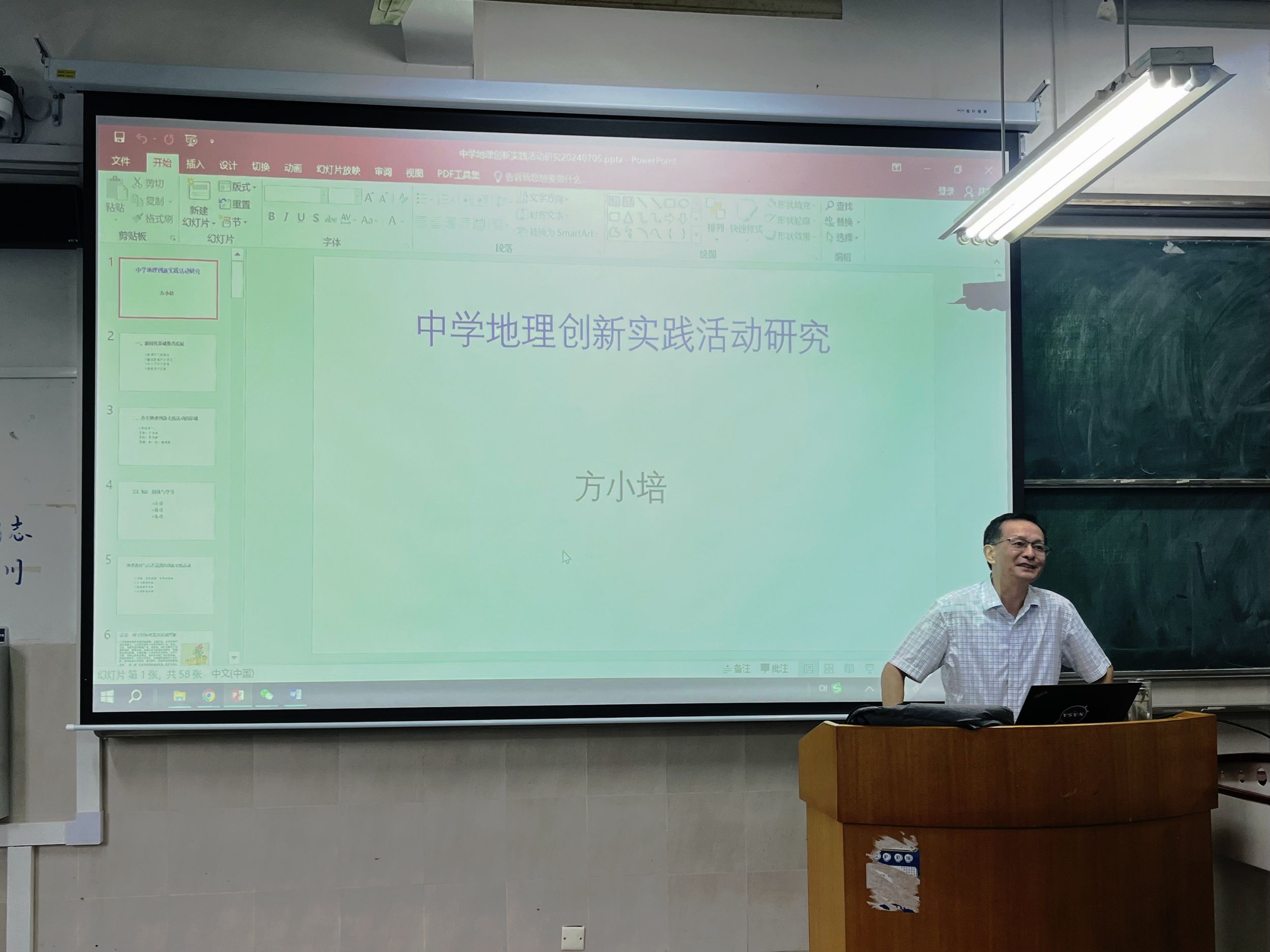 暑期小学期“名师面对面”邀请全国模范教师、全国优秀教师,国家“万人计划”教学名师方小培作题为《中学地理创新实践活动教学的策略与方法》学术报告,学院地理科学专业教师及暑期小学期学员代表参加活动。本次活动由地理科学专业负责人朱永恒主持。