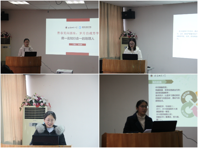 分享会上,获奖受助代表2015级地理科学专业李慧晴、2016级地理科学专业余理佳、2018级酒店管理专业汤仲琳、2017级地理科学专业孙然先后分享了她们的青春奋斗故事。“青春无问西东,岁月自成芳华,”作为推免至北京师范大学的一名地旅学子,荣获97旅本奖学金的李慧晴回顾这四年自己充实的大学生活,表示要做一个知行合一的地理人,培养科学精神,参与科研实践,做到德才兼备。“即使走得慢一些,也绝不停下奋斗的脚步”,获得97旅本助学金的汤仲琳认为,助学金只是一种助推器,而不是主导器,真正摆脱贫困的方式就是自己的努力,承诺在校期间好好学习生活,毕业后力所能及回馈社会,感恩母校,传递爱心。四名同学讲述自己的成长故事,抒发对学院和97旅本学长学姐的感谢之情,纷纷表示自己会怀揣一颗感恩之心,继续前进。