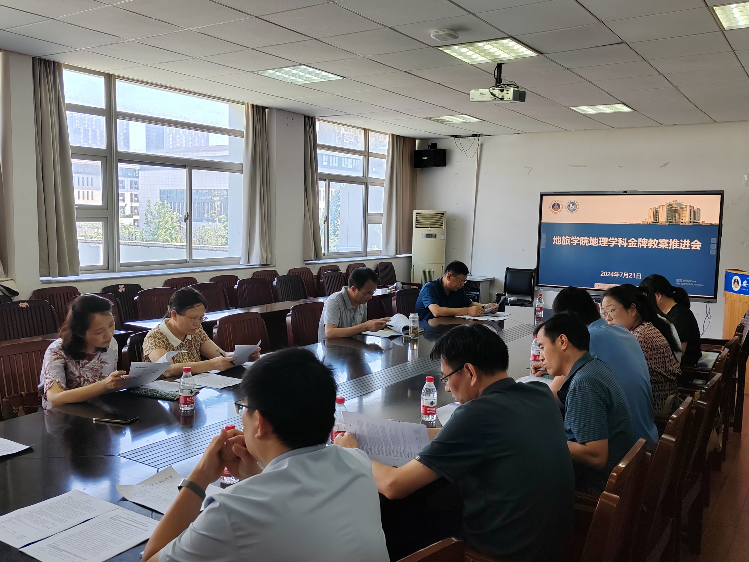 在行政楼三楼会议室召开地理学科金牌教案推进会,学院院长方凤满,副院长杨兴柱,地理科学专业负责人朱永恒,地理科学专业教师胡春生,赵玮等10名特聘教授参加会议。会议由杨兴柱主持。