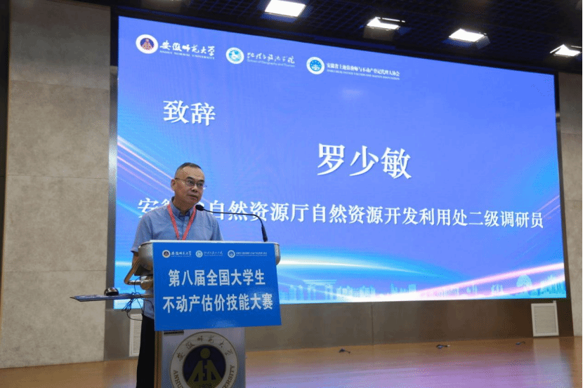 安徽省自然资源厅自然资源开发利用处二级调研员罗少敏表示,大学生是自然资源评价评估行业潜在的中坚力量,期待各位能积极投入到自然资源评估队伍中来,为我国自然资源评价评估业务提供创新性技术,为我国自然资源评价评估行业健康有序发展添砖加瓦,期待各位选手在比赛中大展新时代青年风采,充分锻炼提升不动产估价技能和自身实践能力。