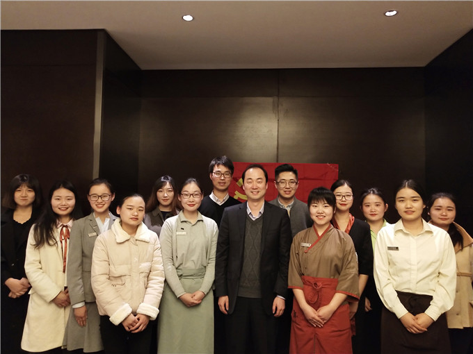 结束了北京人才大厦的调研行程,乔静一行来到北京金茂威斯汀酒店,看望正在该酒店进行专业顶岗实习的2016级旅游管理专业本科生。以实习小组组长梁宇宸为代表的12名同学已经在该酒店实习了3个多月,见到领导老师来访倍感亲切,依次汇报了实习的所见、所闻、所思、所感,吴辉和王阳作为曾经经历过酒店顶岗实习的前辈,给同学们的具体问题提出了自己的建议,乔静认真倾听同学们的发言,详细解答大家实习期间的困惑。座谈会上,乔静主讲了“送党课到实习点”主题党课,传达了全国教育大会精神,带领实习小组中的党员和入党积极分子学习了习近平总书记有关乡村振兴和旅游发展的重要讲话,为同学们补充了丰富的精神食粮。