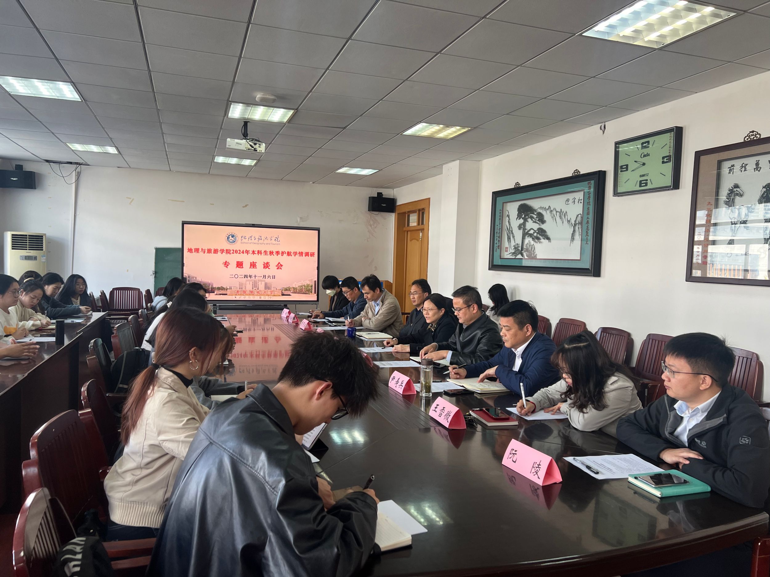 在学院行政楼召开学生工作委员会,专题座谈调研2024年秋季本科生护航学情。座谈会根据专业分为地理地拔地信、旅游土地城规两个分会场,新一届学生工作委员会教工委员、学生委员以及各班级学生代表参加会议。