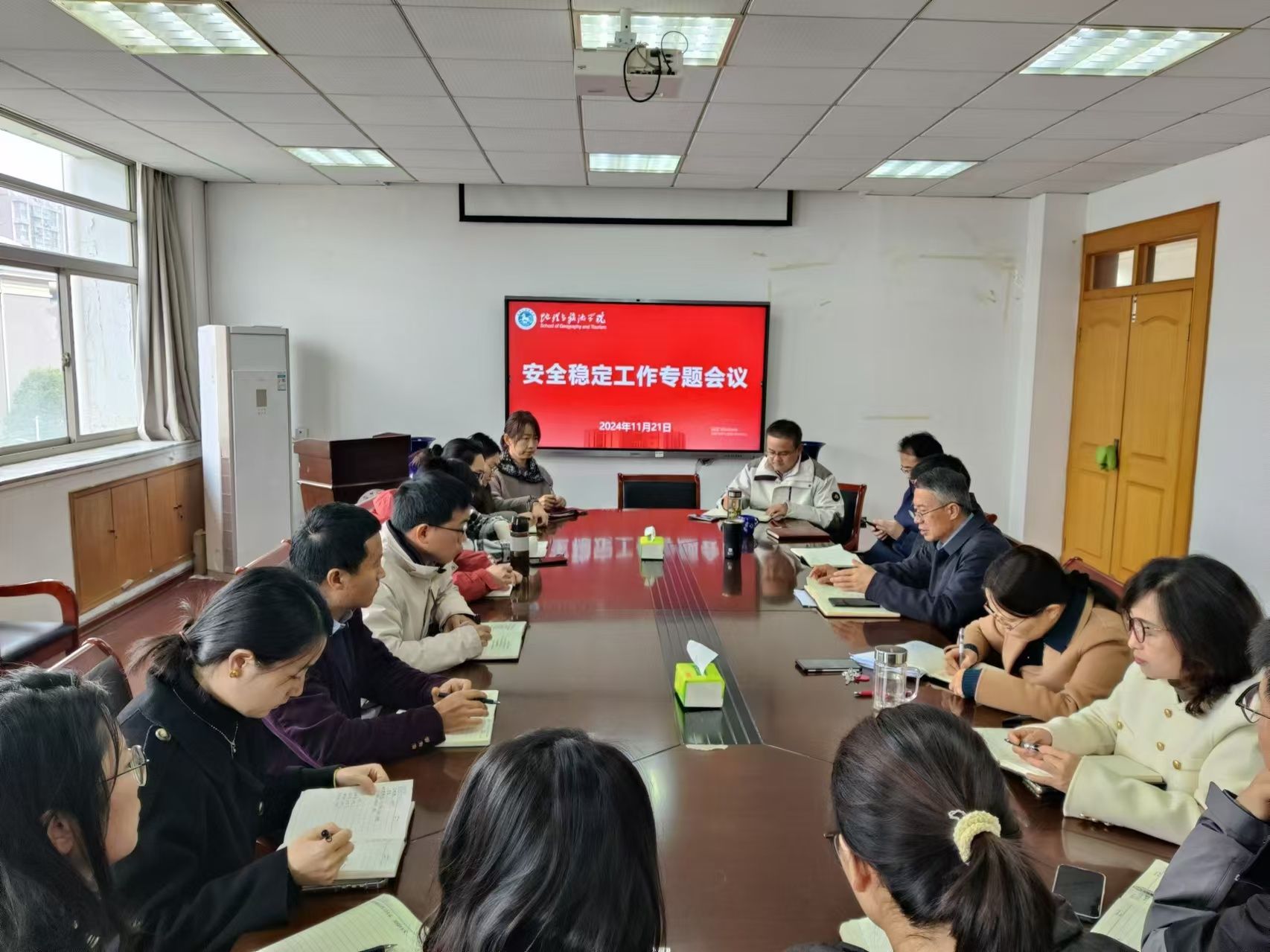 在四楼会议室召开安全稳定工作专题会议,学院领导班子、全体研究生和本科生专兼职辅导员参加,会议由院党委副书记付勇主持。