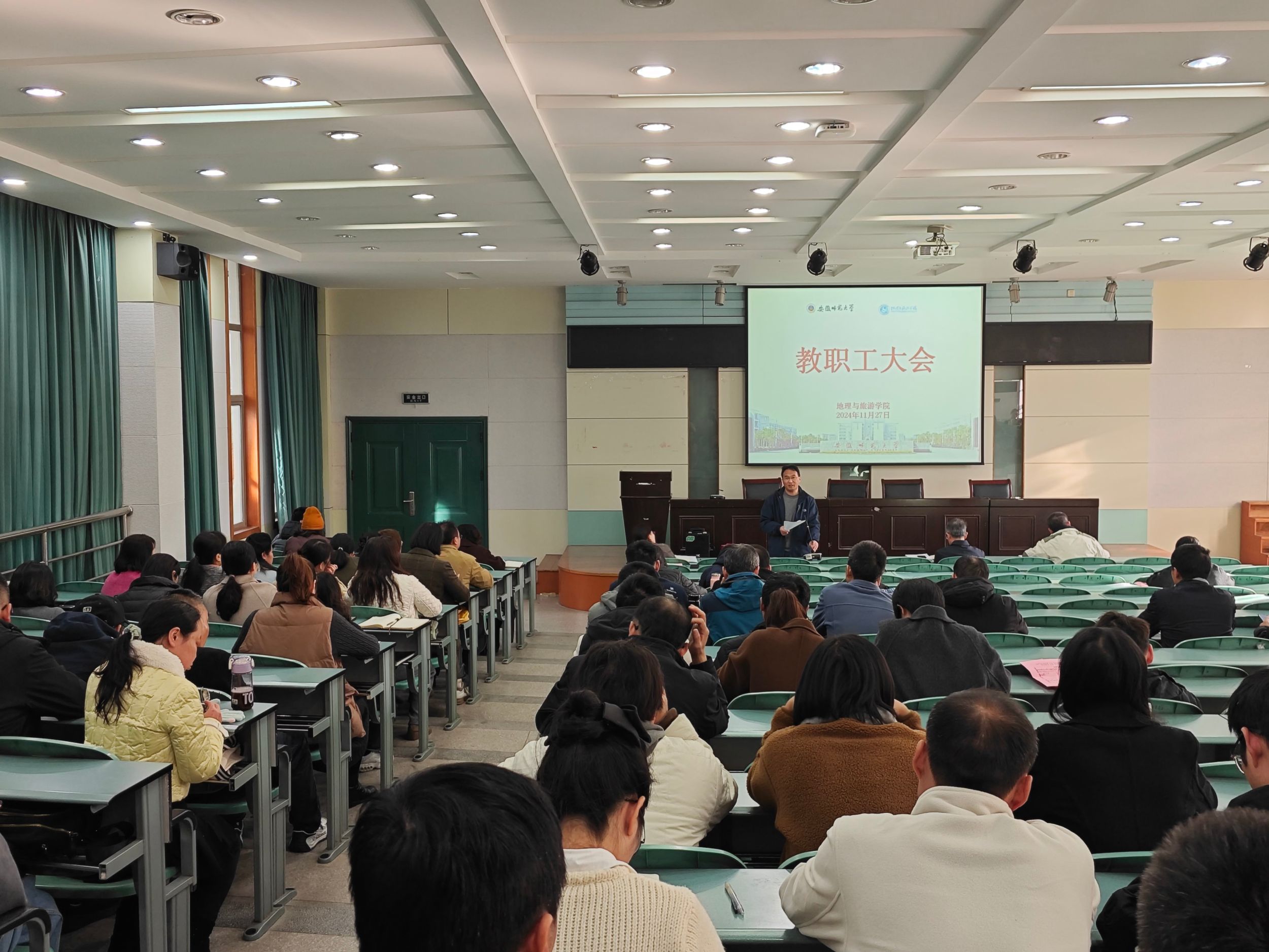 在实验楼101报告厅召开全院教职工大会,专题部署本科教育教学审核评估入校评估工作。学院全体教职工参加会议,会议由院长方凤满主持。