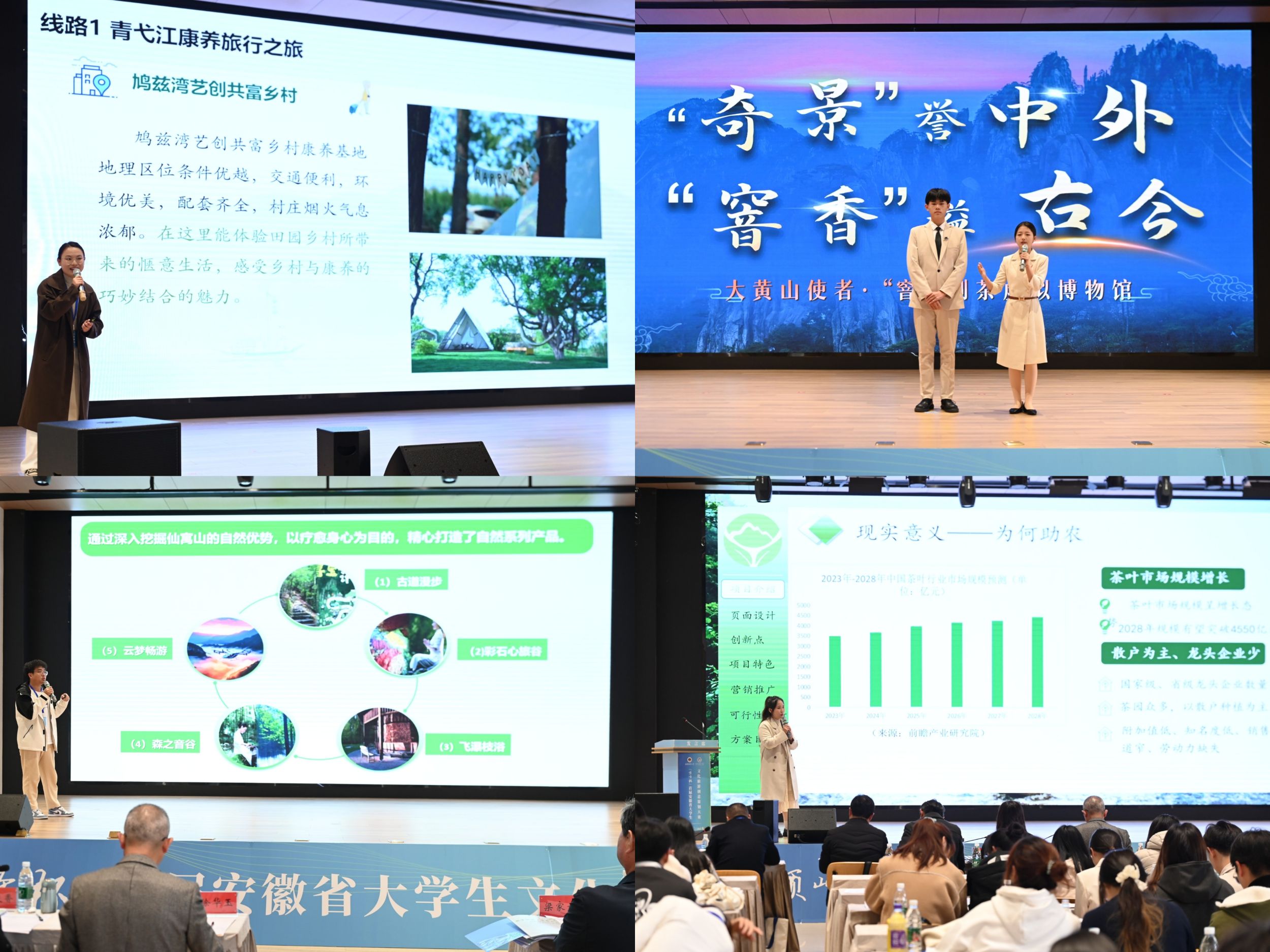 本次大赛以“文旅融合 和美乡村”为主题,以推动中华优秀传统文化的创造性转化、创新性发展为创作方向,以建设彰显徽风皖韵的宜居宜业和美乡村为创作目标,立足大黄山区域和芜湖市湾让区自然特质、文化特色、经济特征及政策特点,创作可视、可感、可学的乡村文旅策划方案,加速文化和旅游深度融合,助力安徽省旅游高质量发展。大赛的举办为安徽省内大学生提供了参与文旅融合和地方文旅发展的途径和创意展现的平台,对于学生创新思维的培养与实践经验的拓展、地方文旅发展的方向明确具有重要意义,开启了安徽省文旅行业文化传承、旅游发展与青年成长协同共进的崭新篇章。此外,赛事还采用图片直播方式广泛宣传参赛学生作品和比赛进程,浏览量超30万,产生较好宣传效应,为下一届赛事作品征集奠定了良好的基础。