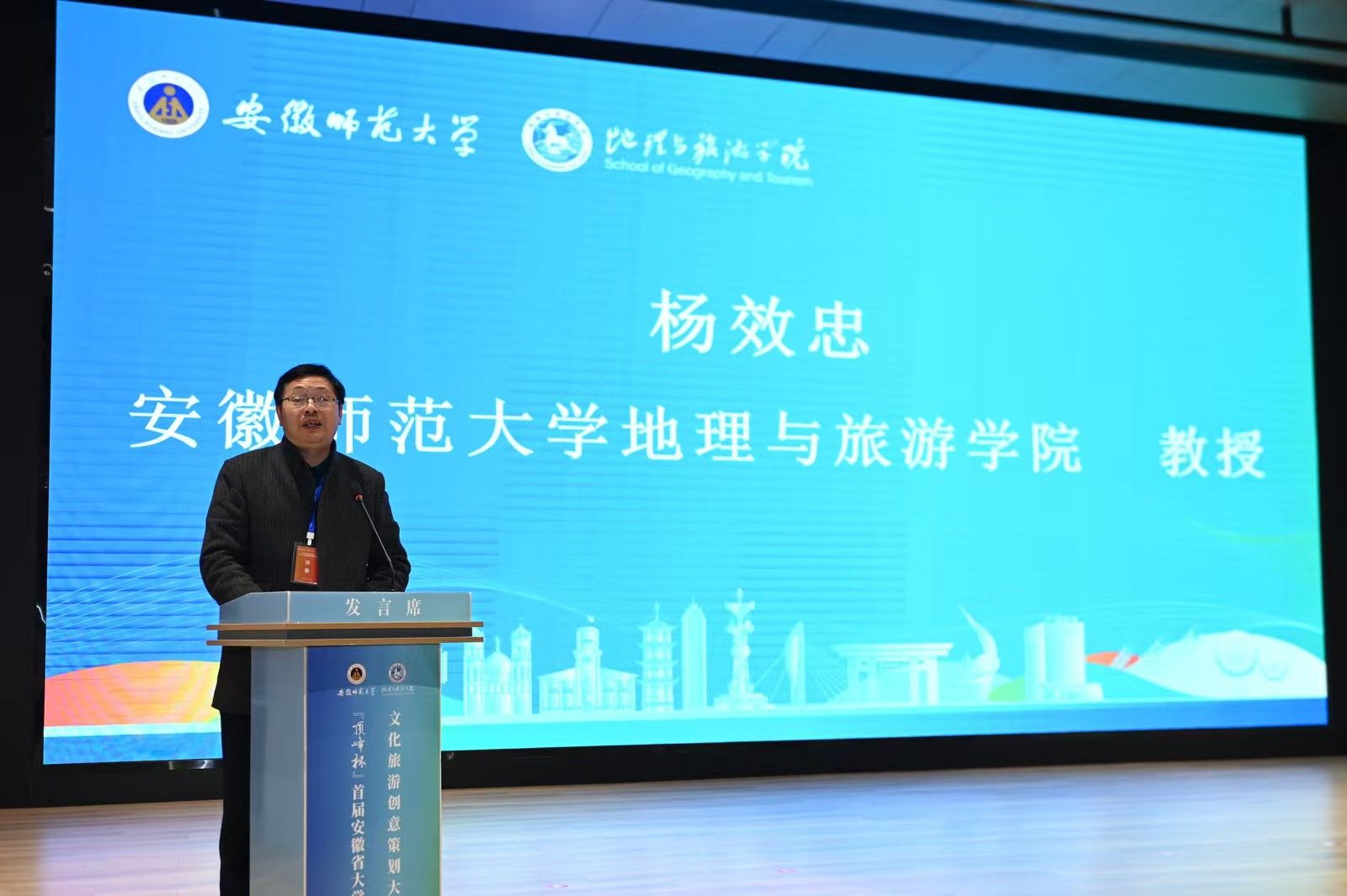 邢军介绍了安徽文化产业发展研究会的基本内容,并表示文旅产业承载国民精神力量与国家软实力,参赛者被寄予厚望,需发挥想象力与创造力,为大众打造多样化、个性化、高品质的文旅产品与服务。缪青表示举办地承载文化传播荣耀,文化与旅游融合助推乡村振兴,与本次大赛初衷契合。徐华玉作为本次大赛评审组组长发表讲话,他先是向参与赛事组织、评审工作的领导、专家以及积极参赛的同学们表达诚挚感谢,随后介绍评审组专家成员的确定和工作要求。参赛团队学生代表、安徽农业大学经济管理学院徐凤丹分享了自己从初赛到决赛的经历与感悟,并代表参赛团队承诺严格履行要求,强调比赛是发现与成长之旅,会全力展示团队风采。