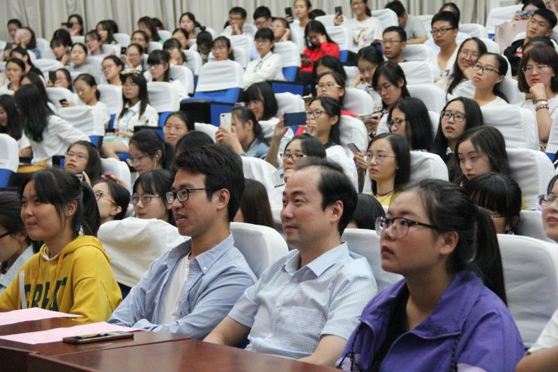2018“迎新生 庆中秋”文艺晚会在花津校区敬文报告厅举行。学院党委副书记乔静,团委副书记吴辉,辅导员陈祥云、吴文涵、王阳及2018级全体新生欢聚一堂,共同参加了本场晚会。
