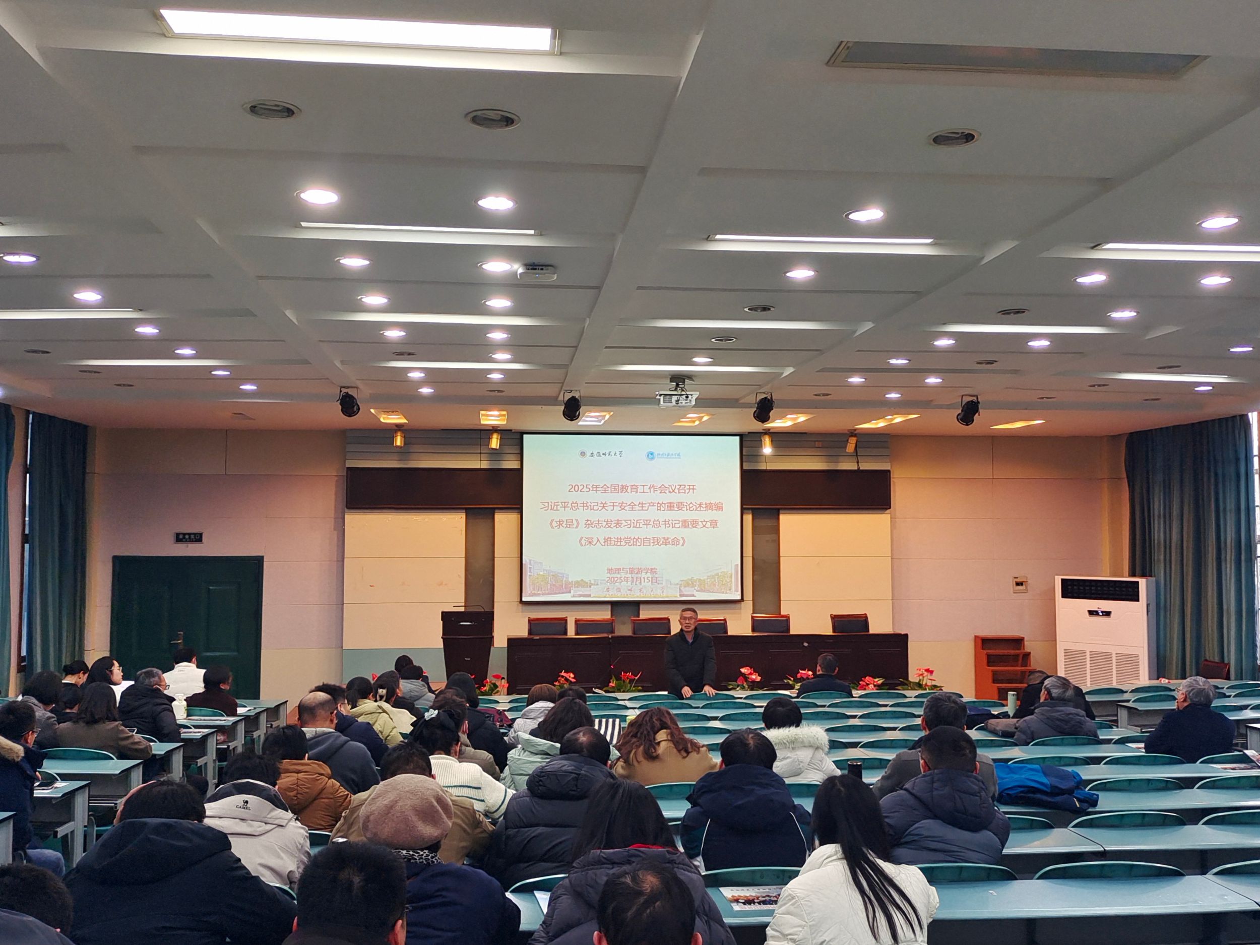 随后,贾冠忠领学了2025年全国教育工作会议精神、习近平总书记关于安全生产的重要论述摘编、《求是》杂志发表习近平总书记重要文章《深入推进党的自我革命》等。他强调,学院全体教职工要提高政治站位,为学院建设作出更大贡献。