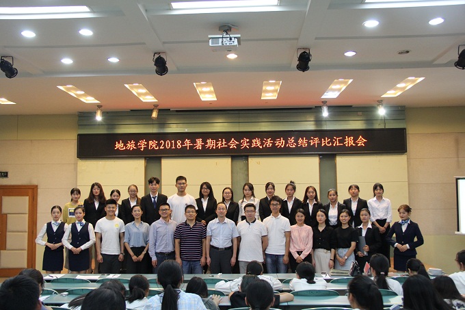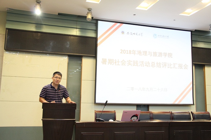 在院实验楼101报告厅举行2018年暑期社会实践活动总结评比汇报会。院党委副书记乔静、地理科学专业孙鹏副教授、院团委副书记吴辉及全体辅导员老师出席评比汇报会,2016、2017、2018级各专业学生代表到场聆听汇报。