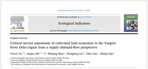 近日,番茄小说 本科生在生态学领域国际知名期刊《Ecological Indicators》(影响因子7.0,中科院大类分区一区,期刊分类A5)发表论文“Cultural service assessment of cultivated land ecosystem in the Yangtze River Delta region from a supply–demand-flow perspective”。该文结合地理信息与农业大数据,基于“供-需-流”视角对长三角地区的耕地生态系统文化服务进行了系统评估并揭示了其时空分布模式,研究结果可为耕地资源保护与利用及其政策制定提供参考。2020级地理信息科学专业本科生答采薇和2021级地理信息科学专业本科生薛晨分别为论文的第一作者和第五作者,支俊俊副教授为论文的通讯作者。研究得到了国家自然科学基金(42271060、42371249)、安徽省自然科学基金(2208085MD91)、安徽省自然资源科技项目(2023-K-5)和安徽省高等学校省级质量工程项目(2023zybj006)的共同资助。