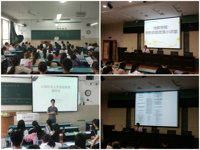 学院将资助政策宣讲与2018招生宣传相结合,在招生简章上专列一栏,介绍校、院两级的资助帮扶与奖励政策,向2018届学生及家长进行宣传,帮助更多的家庭经济困难学生圆大学梦,解除家庭的后顾之忧。除此之外,学院还播放了资助政策宣讲的视频,在学院微信公众号上专门推送了一期国家资助政策讲解的内容,让更多的学生能够随时随地的进行查阅。在2018级新生报到时,学院还通过校园迎新导游向新生们进行政策宣讲,现场进行问题解答,解决新生的后顾之忧。
