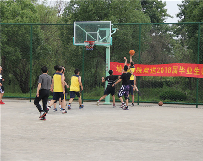 在北侧体育场举办欢送2018届毕业生师生篮球赛。院党委副书记乔静、教职工代表和毕业生代表参加了这次篮球赛。