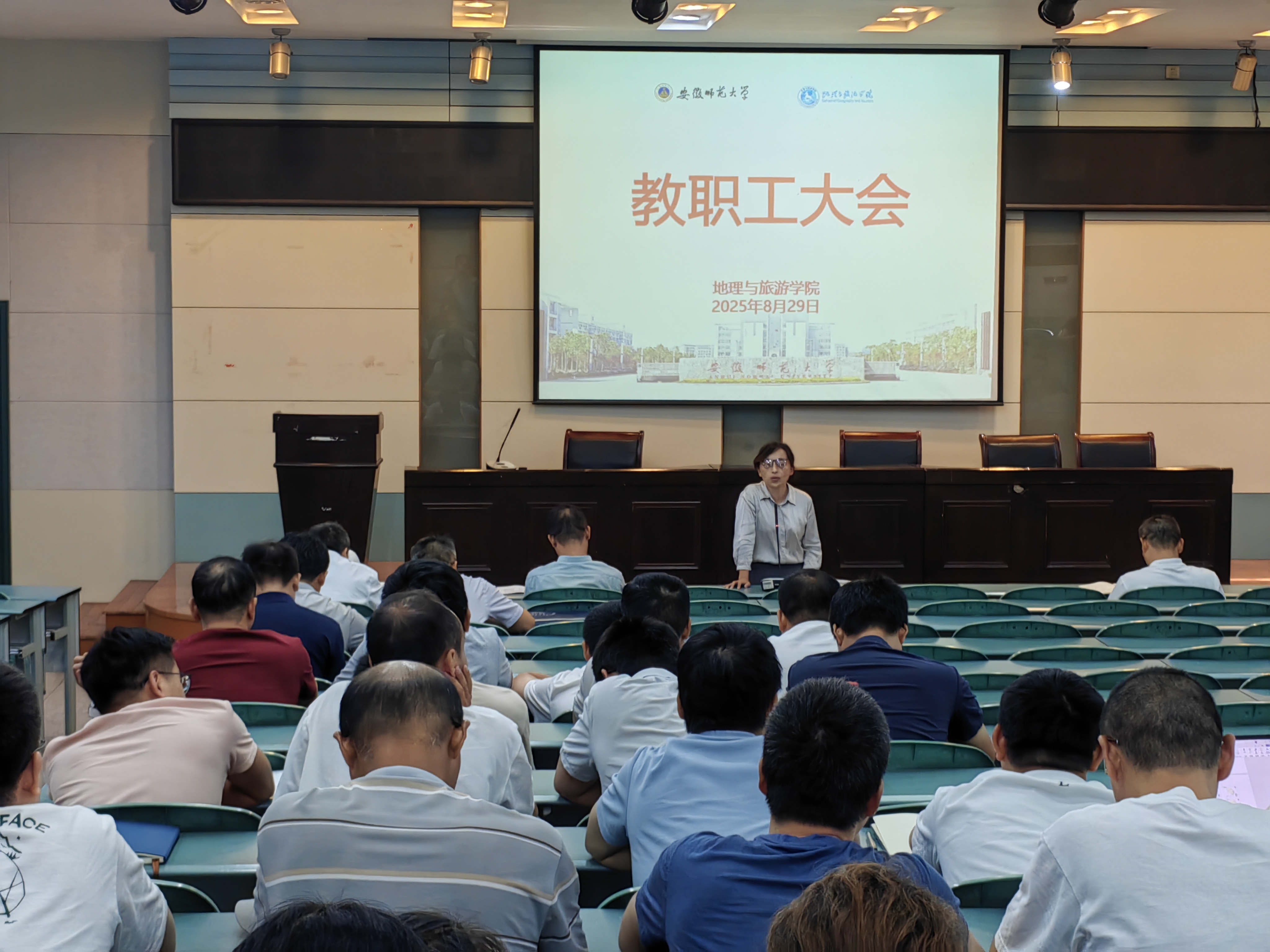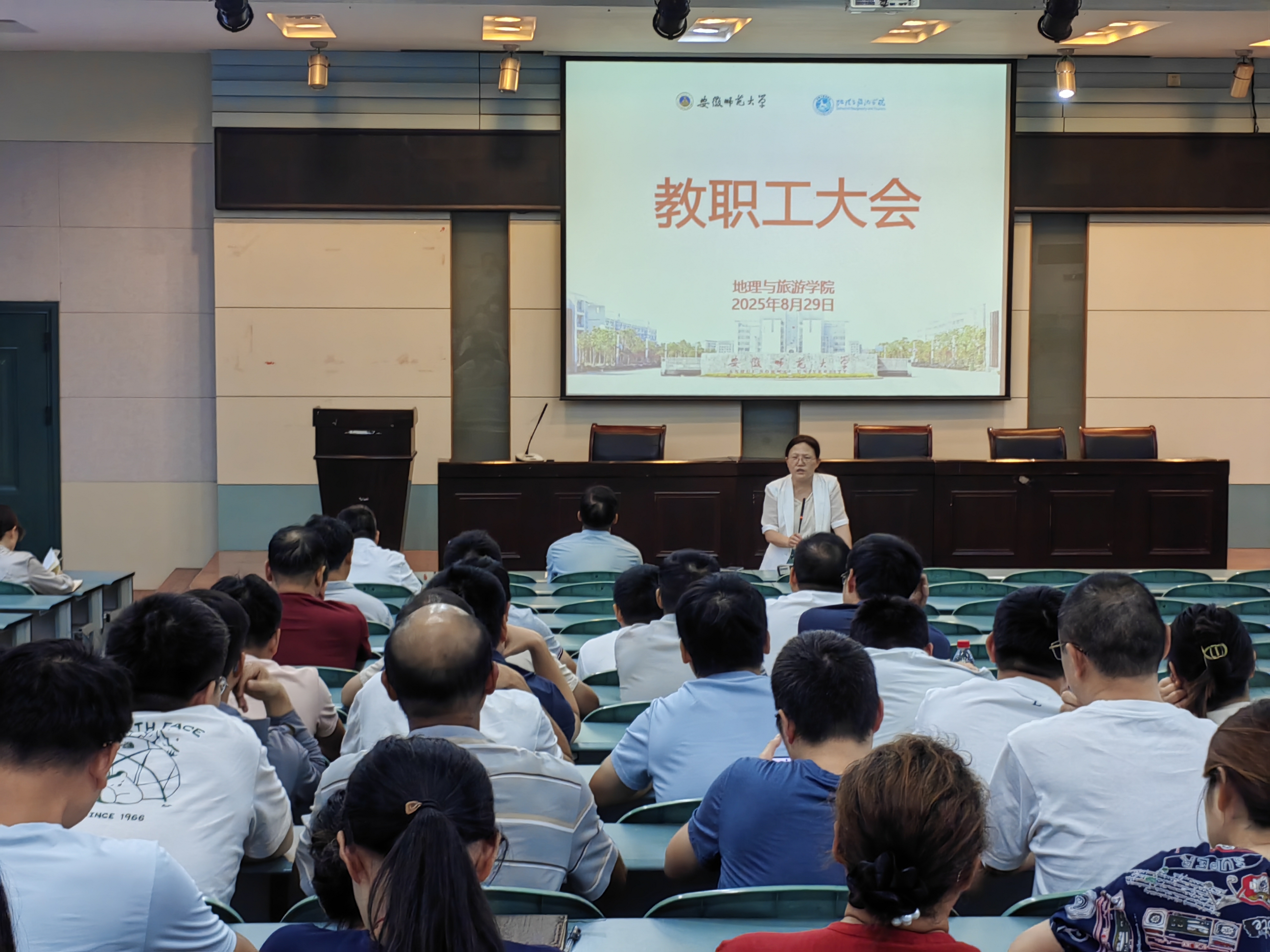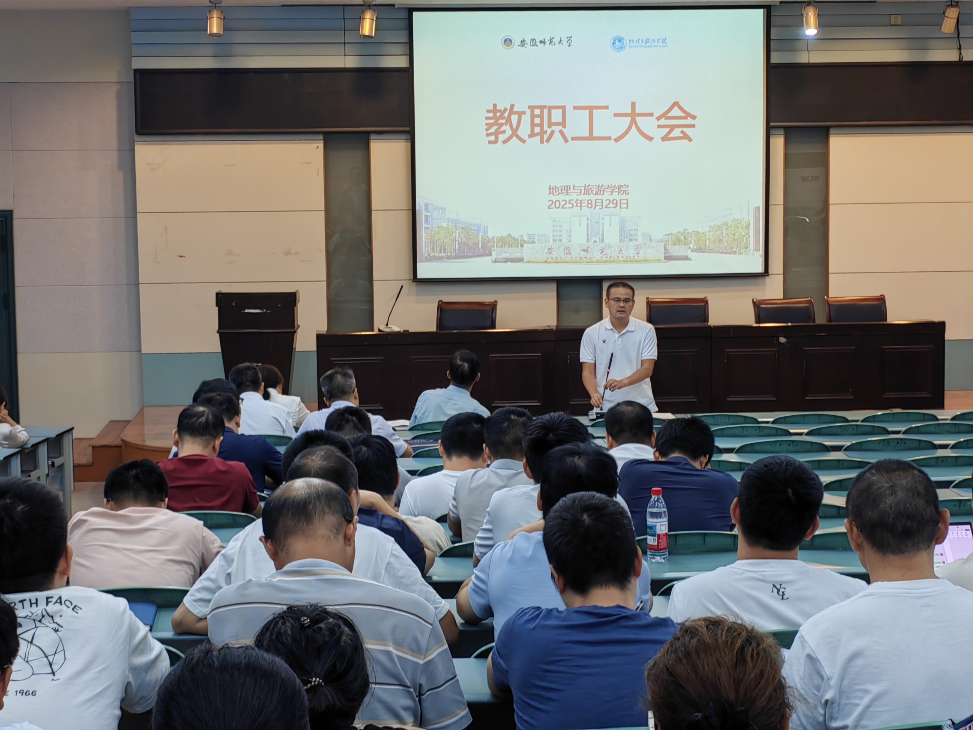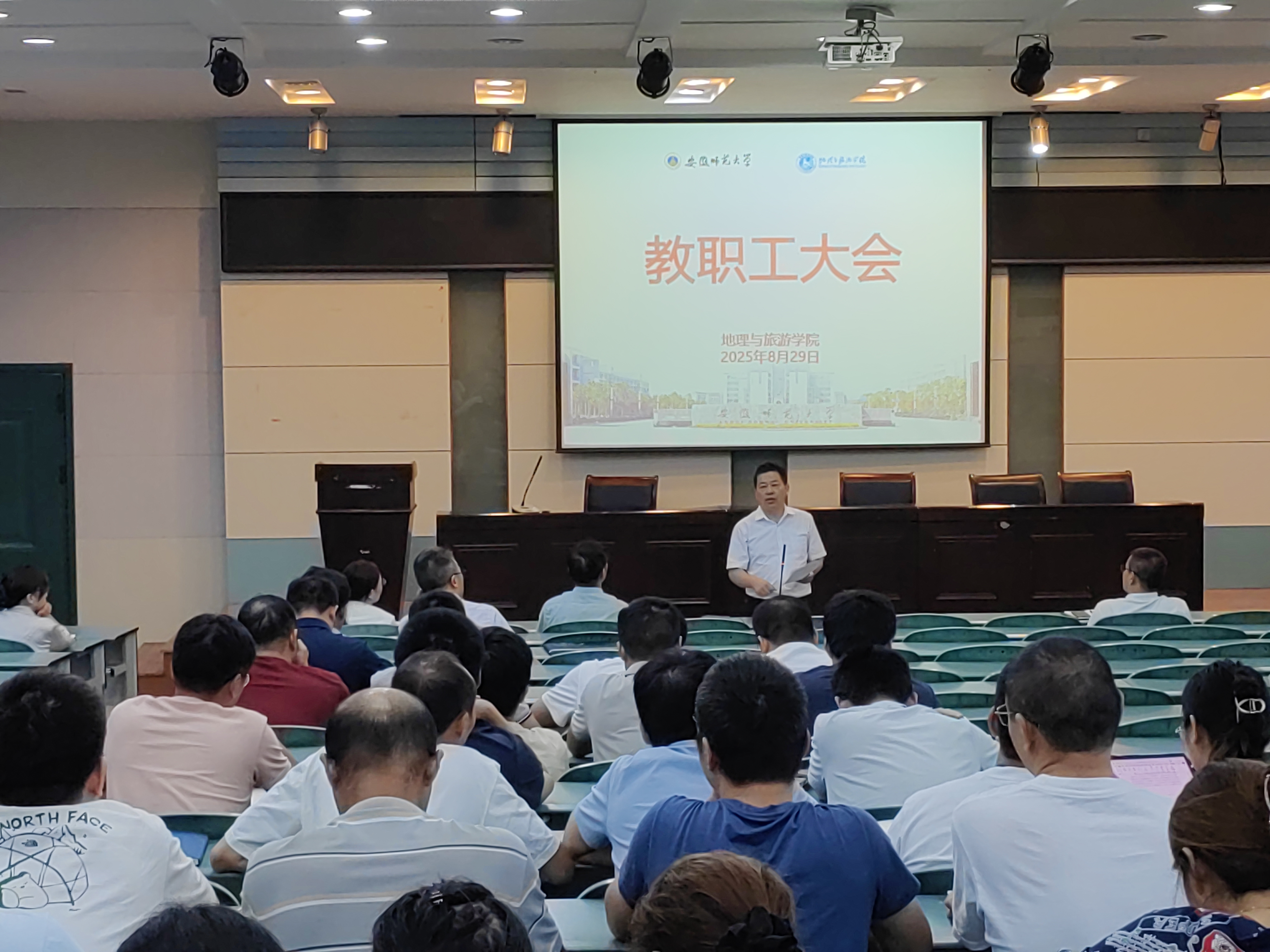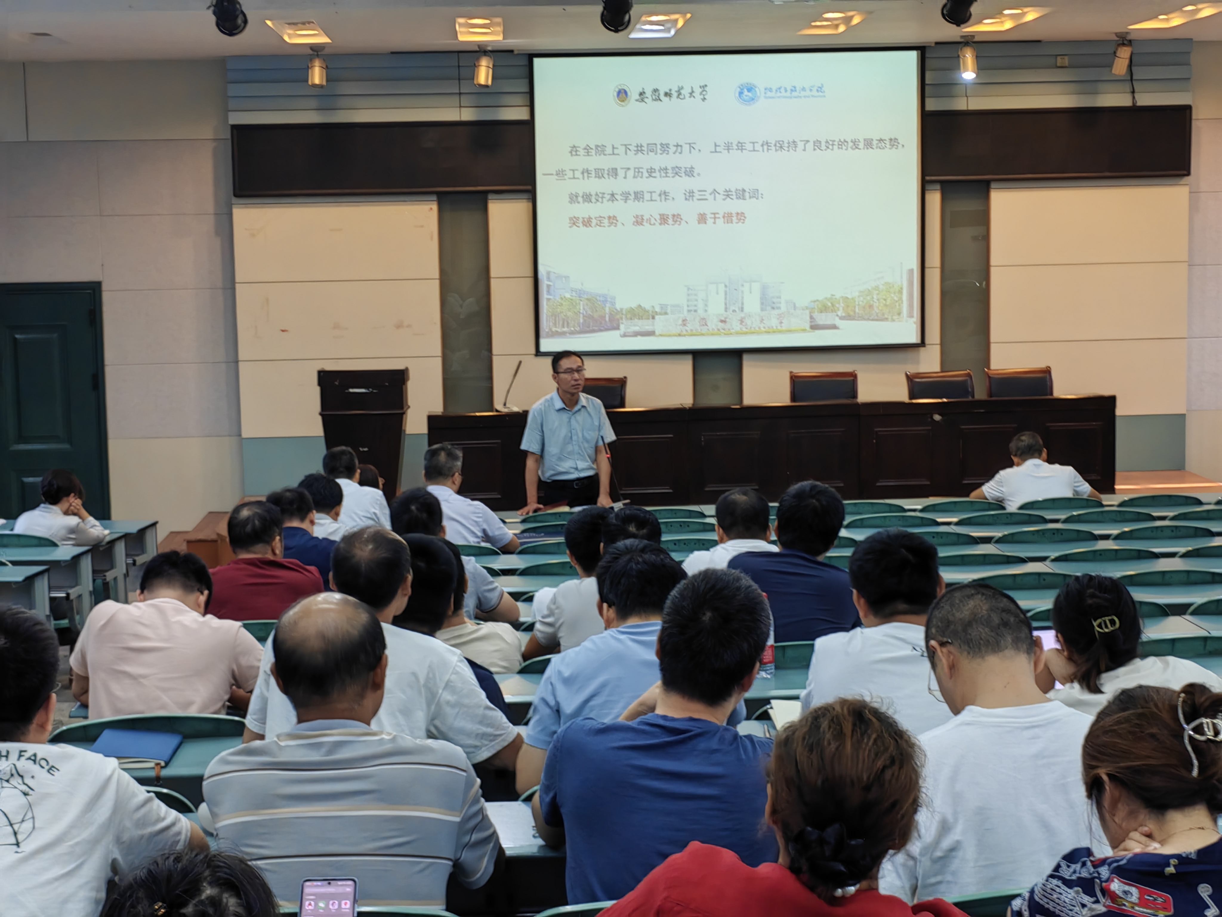 在学院实验楼101报告厅召开新学期第一次教职工大会,深入学习习近平总书记近期重要讲话和重要指示批示精神,传达学习学校新学期工作会议精神,总结暑期工作,布置新学期工作。学院党政领导班子成员、全体教职工参加会议。会议由院长方凤满主持。