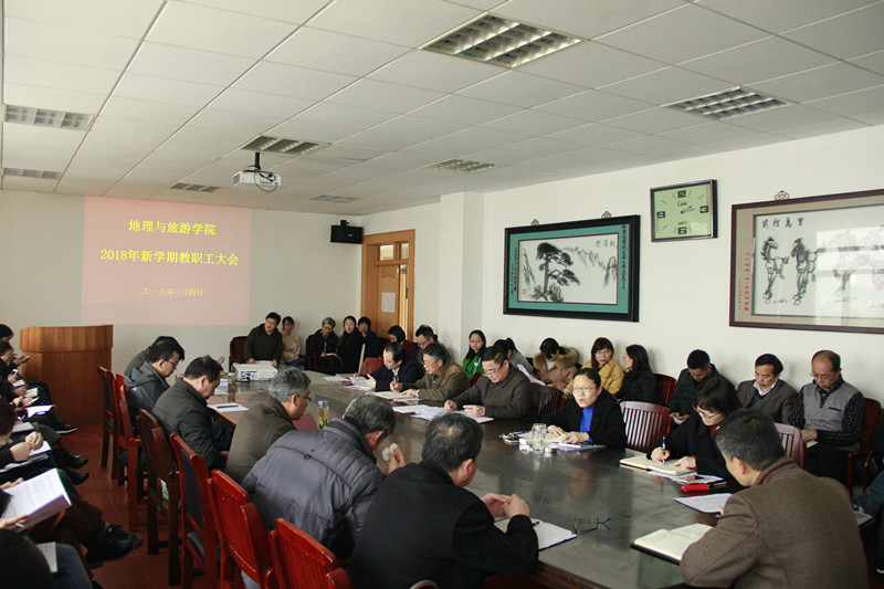 会上,各分管院领导分别对各自分管的新学期的重点工作计划进行了解读和开学初的工作进行了具体布置。方凤满布置了开学初“三教”落实、选课和专业实习等工作;王朝辉因外出学习由苏勤代替强调了基金申报以及部分点长调整工作;乔静汇报了近期考研上线的本科生面试辅导、“职旅天下”招聘会和本科生论文大赛等重点工作;赵冬梅通报了实验楼维修改造进展及庆祝三八节系列活动的通知;贾冠忠通报了学院2017年度党员领导干部民主生活会情况,承诺进一步落实问题清单并整改,部署了学院2018年党建重点工作;苏勤向全院教职工说明了学院更名的始末,学院为了适应学科发展和一流地理学科建设的需要,院党政联席会研究决定,将国土资源与旅游学院更名为番茄小说