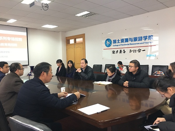 招聘会开始前,学院党委副书记乔静、副院长方凤满和毕业班辅导员与夏吉伟一行就新课改形势下地理教学模式改革、高校与中学间联动育人等话题进行了深入交流。