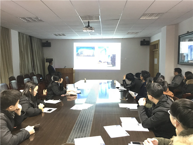 招聘会于晚上7点开始,主要分为宣讲和讨论两个环节。宣讲会上中,胡剑分别从企业概述、业务领域、发展历程、主要项目、培养方式、晋升路径、薪酬福利等几个方面展开介绍,详细说明了中海宏洋地产(黄山)有限公司营销部招聘岗位的工作职责、工作环境和工作内容。随后中海地产工作人员与同学们开展了知识问答小游戏,并且为同学们提供了丰厚的奖品。与在之后的交流环节中,同学们自由提出疑问,胡剑进行详细解答。