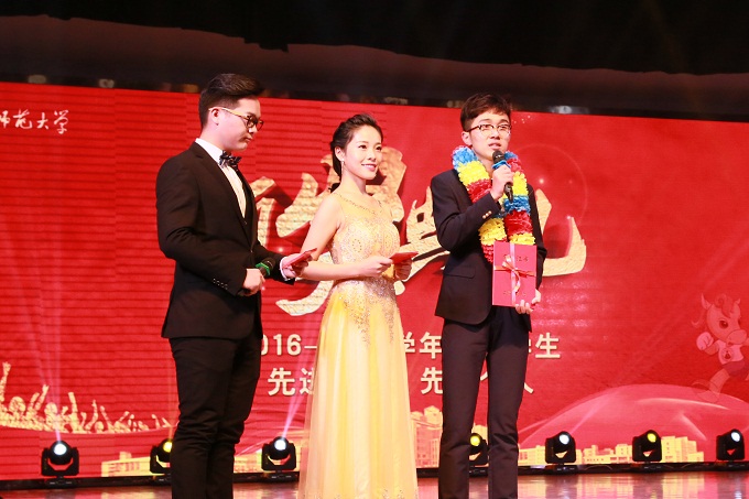在花津礼堂隆重举行2016-2017年学生先进集体先进个人颁奖典礼。校领导、机关各部门负责人、各学院党委书记、学生先进集体代表、先进个人和学生代表参加本次典礼。下午2时许,颁奖典礼在舞狮精彩表演中拉开序幕,随着吉祥物安安和诗诗的亮相,国家奖学金获得者、三好学生标兵代表、优秀学生干部代表等一大批师大优秀学生代表携手亮相红毯,投放青春心语,在荣誉墙上签名留影。签名结束后,各优秀个人与代表一同与校领导合影留念。在聚光灯的闪烁下,各与会代表陆续步入会场,颁奖典礼正式开始。校领导和相关负责人分别为受表彰的学生和代表献戴花环并颁发荣誉证书。