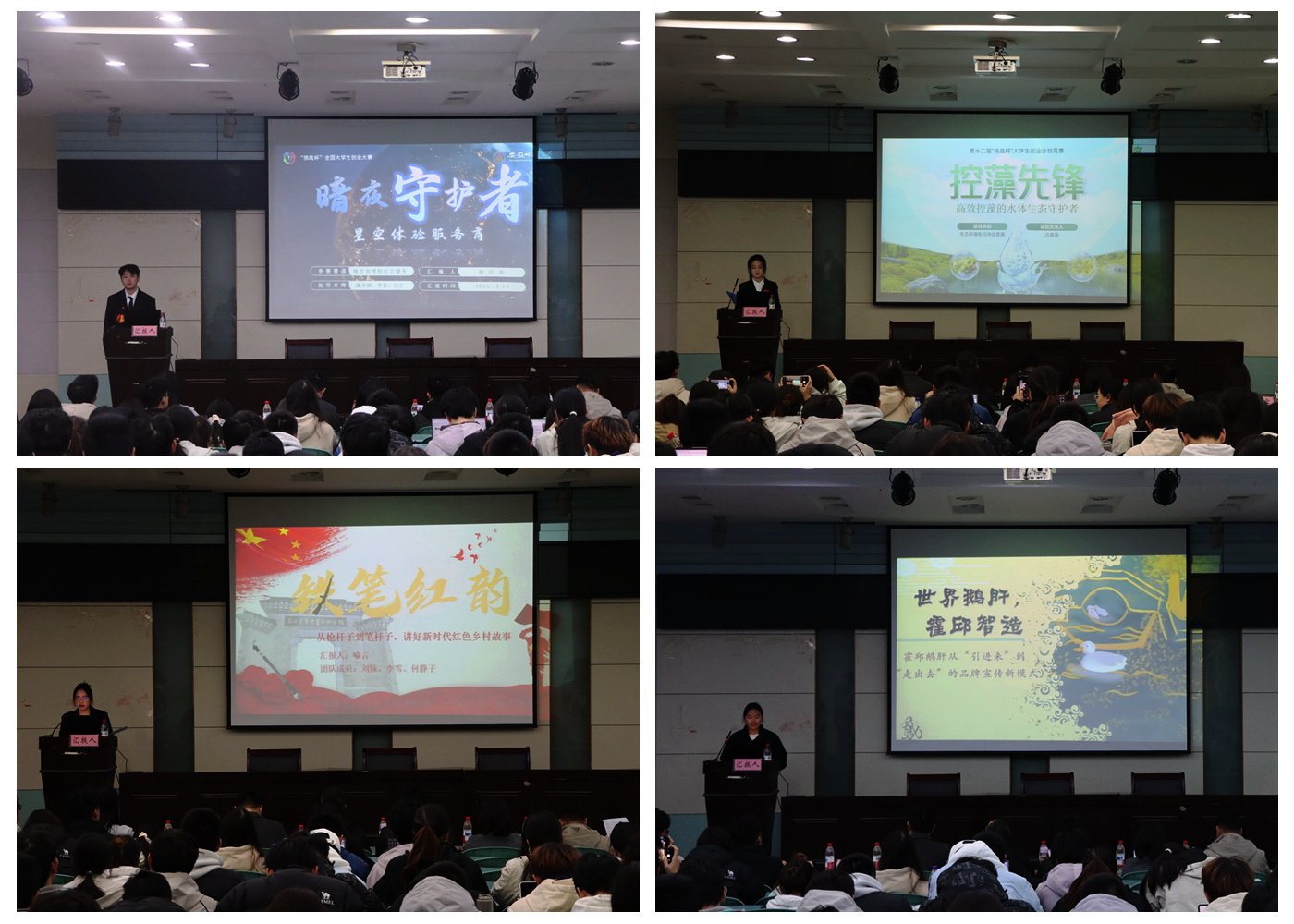 本次院级汇报评选共有27支团队参加,涵盖科技创新、乡村振兴、生态环保、文化创意等多个领域。各团队聚焦国家战略和社会发展需求,结合学科特色与实践观察,通过清晰的逻辑和流畅的汇报,全面展示了项目的创新性、可行性与社会价值。其中,“控藻先锋——高效控藻的水体生态守护者”团队致力于研发环保型除藻药剂,助力生态文明建设;“暗夜守护者,星空体验服务商”团队借助技术手段推动星空旅游与生态保护相结合;“铁笔红韵——从枪杆子到笔杆子,讲好新时代红色乡村故事”团队深入挖掘红色文化资源,推动文旅融合与乡村振兴。此外,多支队伍关注农业农村现代化,如“乡愁主题景观菜园”、“世界鹅肝,霍邱智造”等项目,积极探索农产品推广与乡村文化振兴新路径。
