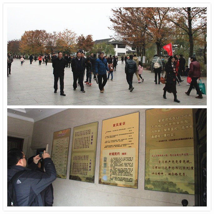 次日,党员们来到江阴市天下第一村“华西村”。在该村讲解员的陪同下,一行先后参观了华西农业高科技示范园、智能化蔬菜大棚等景点,登华西金塔十五楼,观华西村欧式建筑别墅群,俯瞰大华西村全貌,走万米长廊、观华西发展之路、华西党建展览馆展厅,在参观学习的过程中,党员们深切地感受到华西村在党的领导下,艰辛创业,新老书记带领村民走中国特色社会主义道路,不断满足人民对美好生活的向往,从物质到精神,从文化到生态发生的翻天覆地的变化。大家通过参观展览馆、走村串户深深地感到华西人坚韧不拔的精神