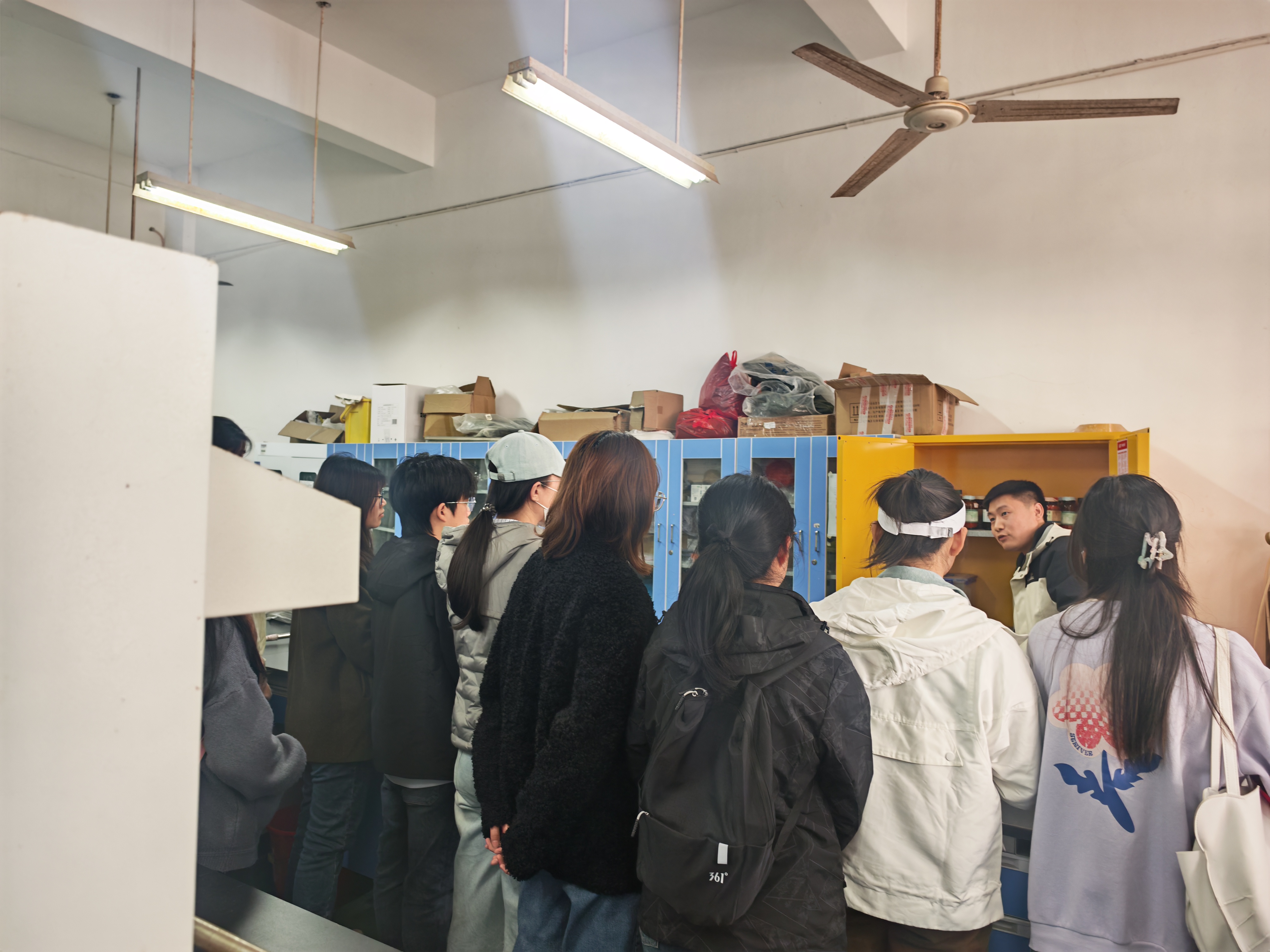 讲座结束后,李硕林现场指导师生如何识别实验室危险源,重点讲解气体钢瓶的固定方式、减压阀使用状态、规范操作流程及安全隐患判定方法等。在管制类化学品管理方面,现场演示了易制爆、易制毒化学品储存方式与台账记录规范,强调要确保账物相符、流向清晰。此外,还对实验区域的应急喷淋、洗眼器、防爆柜、通风橱等安全设施的位置、日常检查要点及操作规范等进行了详细讲解。
