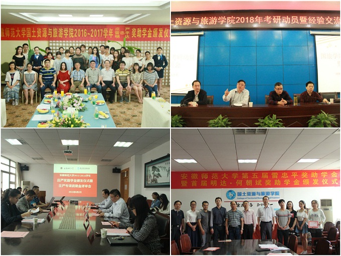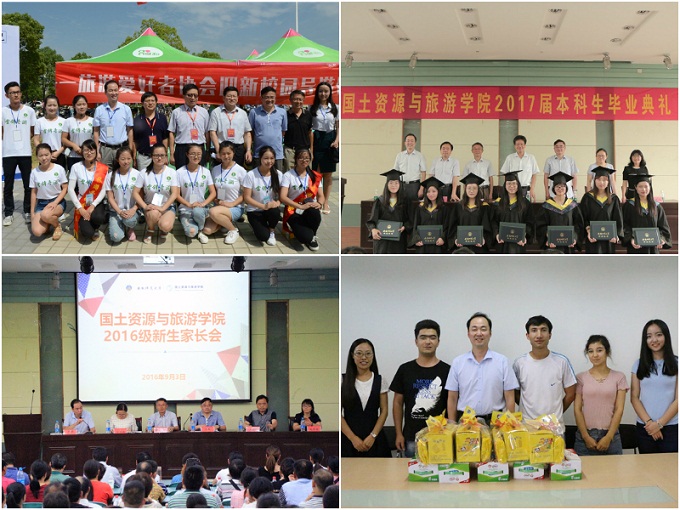 强化“协同育人工程建设”,学院积极倡导“以生为本、立德树人、合力育人”的办学治院理念,坚持把立德树人作为中心环节,把思想政治工作贯穿教育教学全过程,打造协同育人“共同体”,实现全程育人、全方位育人。一是探索“教学管”协同育人模式创新。学院始终以“以生为本、立德树人”为目标,把学生放在中心位置,整合“教学管”三支队伍暨本科生导师、党政干部、专兼职辅导员各方育人资源,推动“三个课堂”合力育人、“三支队伍”联动育人,促进人才培养质量的提高和工作模式的转变,让学生管理服务和教育教学无缝对接、教学相长。二是发挥本科生导师制的同频共振效应。2006年9月起,为全面提高人才培养能力,充分发挥教师在育人过程中的主导作用,学院在2005级、2006级四个本科专业的十三个行政班级率先试点实施了本科生导师制,历经十年探索专业教师在在学生思想引导、价值导向上的独特优势,鼓励教师通过将思想政治教育融入对学生的专业思想教育、学业生涯规划、职业生涯规划、科研素养培育、社会实践指导、就业指导帮扶等工作过程中,形成思政工作多支队伍方向一致、力量倍增的效应。三是推进校内校外育人共同体建设。加强校内教师育人共同体队伍建设,举办“学工沙龙·学生工作论坛”、“院领导、师生面对面冷餐会”、“我与大咖有个约会”新生专业思想教育、“社会主义核心价值观”省级辅导员名师工作室、“乐行心旅”学生发展辅导站,逐步形成凝心聚力的校内教师育人共同体;创新实施本科生“小导师制”,支持指导“爱心者协会”、“地理科普协会”、“旅游爱好者协会”、“皖江知行社”、“大学生辩论者协会”等学生社团发展,推动形成“四自”能力的校内朋辈育人共同体;发挥资助育人功能,引进社会资源设立“庄严”、“雷忠平”、“明达”、“何朝斌”等等4项奖助学金,组织“四暖”(暖春、暖冬、暖途、暖心)资助行动,全年共发放校级奖助学金116.93万元,受益学生746人,院级专项资助金年受助学生420人次,受助金额42.1万;发掘政府和社会办学资源,推行“校内+校外”的双导师制度,积极搭建“政府领导、行业精英、学界专家、专业学生”四位一体育人平台,突出“就业招聘+专业建设+行业发展+人才培养”四位一体“招聘会+”的创新特色,如2015年创立由安徽省旅游局和我校共同主办,学院承办的安徽省“职旅天下”旅游行业政校企对接专场招聘会暨安徽省旅游业政校企合作高峰论坛,打造协同育人的校内外政校企育人共同体。