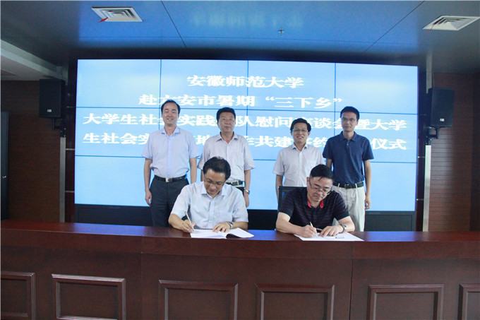 国土资源与旅游学院与六安市旅游委员会在六安市旅委会议室举行大学生社会实践基地合作共建签约、挂牌仪式。六安市旅游委员会主任梁修存、六安市旅游委员会党组书记漆学敏、校党委学工部部长、学生处处长台启权、校团委副书记汪凯、国旅学院院长苏勤、院党委副书记乔静出席仪式,六安市旅游委员会、我校国旅学院相关工作人员和我校赴六安市金寨县革命老区红色旅游资源与旅游精准扶贫调研团队全体实践队员参加了仪式。仪式由六安市旅游委员会主任梁修存主持。