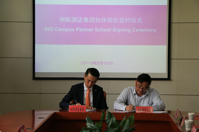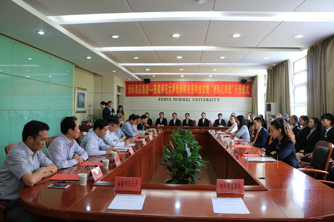 据悉,我校国旅学院长期以来高度重视应用型专业的联合培养及合作办学工作,与开元集团等国内外知名企业集团保持长期良好合作关系,坚持以“国际化、复合型、应用性”为特色,以“学校教育+行业培养”双向教育为抓手,积极开展“教学+实习+实践+就业”四基地建设,成果斐然。据了解,洲际酒店集团(IHG)成立于1777年,是目前全球最大及网络分布最广的专业酒店管理集团,在全球100多个国家和地区拥有 5,000 多家酒店和近 74.4 万间客房,拥有洲际、皇冠假日、假日、智选假日、英迪格、华邑酒店等多个国际知名酒店品牌和超过60年国际酒店管理经验,是世界上客房拥有量最大、跨国经营范围最广、在中国接管酒店最多的超级酒店集团,其业务涉及中国大陆25个省、区、市。值得一提的是,在2016杭州二十国集团工商峰会(B20)筹办期间,我校国旅学子在B20峰会主会场(杭州国际会议中心暨杭州洲际酒店)全力投入相关工作,充分展示了师大学子精湛的专业素养和良好的精神风貌,学校因此被授予二十国集团工商峰会(B20)服务保障优秀合作院校称号。