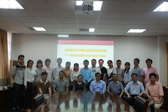 自然地理学专业和环境灾害学专业硕士生导师程先富教授、方凤满教授、吕成文教授、朱永恒教授、张平究教授和沈非副教授担任答辩委员。本次答辩会共有15名毕业研究生参加,自然地理学和环境灾害学专业一、二年级研究生30余人到场旁听。
