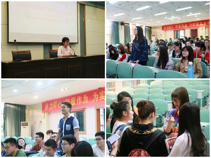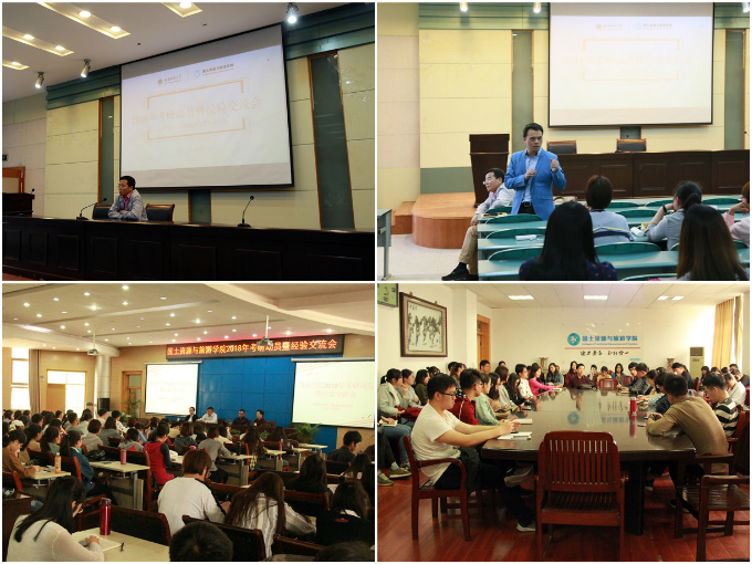 本网讯(国旅学院 赵 将 徐童彤)师生共勉,坚定考研目标;经验交流,互助勇敢前行。4月19日下午,国旅学院分专业类别在2014级、2015级各班级组织举办了2018届、2019届本科生考研动员暨经验交流大会。国旅学院院长苏勤、院党委副书记乔静、副院长方凤满、副院长王朝辉以及各专业负责人、专业教师代表、辅导员、2017届优秀考研学生代表参加了本次会议。
