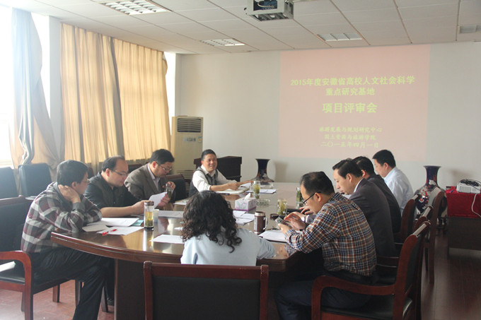 旅游发展与规划研究中心在国旅学院四楼会议室召开2015年度省高校人文社科重点研究基地招标项目评审会。校科研处处长、中心主任陆林教授、池州学院资源环境与旅游系主任胡文海教授、国旅学院院长焦华富教授、副院长苏勤教授、副院长卢松教授、杨效忠教授、中心常务副主任杨钊教授出席了评审会,会议由陆林教授主持。