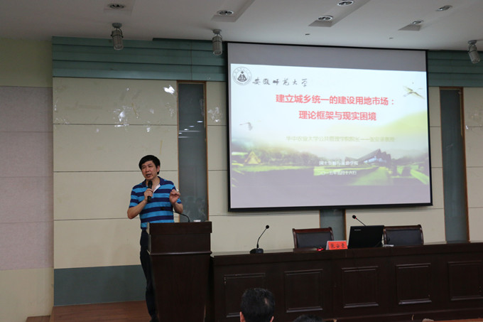 实验楼101教室,作了题为“建立城乡统一的建设用地市场:理论框架与现实困境”的学术报告。学院相关专业教师和研究生参加了报告会。