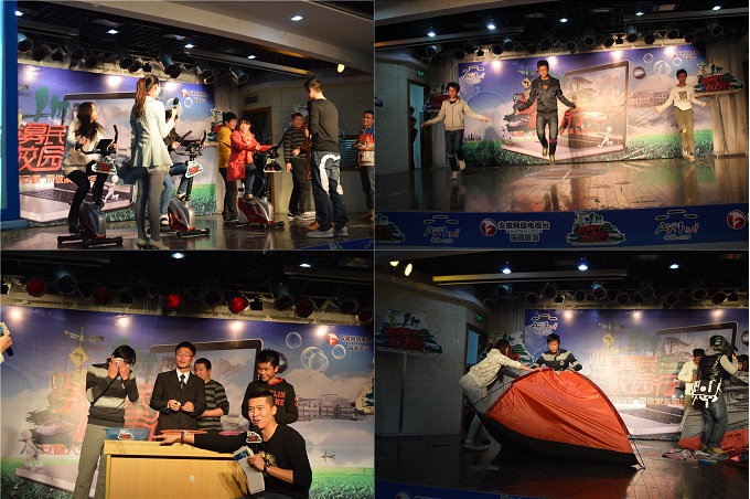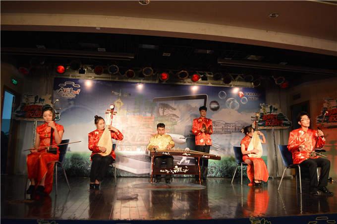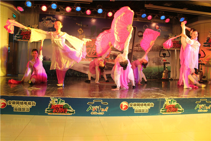 整场文化节晚会充满着浓郁的“中国风”、“徽州情”,舞台两侧的大屏幕,播放着徽州区、齐云山,黄山,芜湖等地的旅游形象宣传片,带领着同学们现场领略了“徽神皖韵”的山河建筑之美。国旅学院大艺团以一支集优雅灵妙于一体的扇子舞《床前明月光》拉开了整场活动的序幕。而随后进行的“骑乐无穷”、“ 登高望远”以及“水底探秘”、“共建家园”等互动游戏环节更吸引了现场师生的积极参与,活动气氛热烈火爆。主持人分别对每位获胜者予以了旅游纪念品及“游募民·校园行——畅游安徽好山河”的奖励;同时,还对被现场抽取的幸运观众进行了旅游门票大派送,掀起了整场活动的最高潮。最后,国旅大艺团以一曲民乐版的《欢乐颂》,为本场晚会落下了完美的帷幕。
