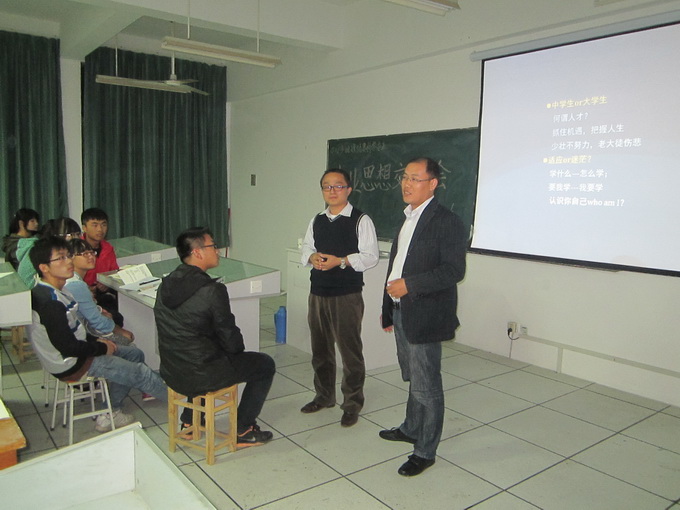 (本网讯 陈健)10月16-17日晚,学院分别在实验楼101、201、212教室开展新生专业导航暨班主任见面会,院党委副书记、专业教师、班主任及辅导员与13级新生共同参与了本次专题活动。