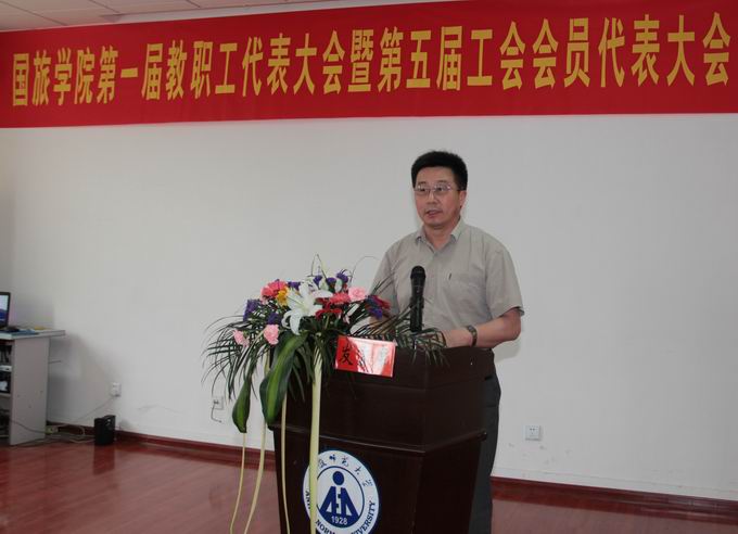 程度代表学校党政向大会的召开表示热烈的祝贺。他向国旅学院“两代会”提出三点要求:一是教代会和工会要把自觉接受党的领导与独立自主地开展工作统一起来,二是要把维护学院整体利益与维护教职工当前利益和长远利益统一起来,三是要把继承教代会、工会工作的优良传统与在实践中勇于创新统一起来。同时他希望国旅学院以“两代会”为契机,认真学习宣传贯彻党的十七大精神,不断提高教学质量,继续加强民主管理,推动学院和谐发展。