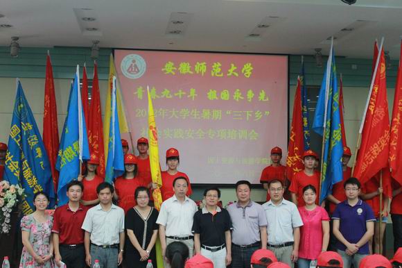 最后罗书记提出了三点希望:希望老师、同学树立安全意识,自我保护意识,确保暑期社会实践的安全顺利进行;希望大家把社会当大课堂,多学习,勤思多问,发挥专业优势,提高素质;希望队员要敢于吃苦,要有志愿者精神,乐于奉献,并维护学院声誉,在“向实践学习、向人民群众学习”行动中丰富阅历、磨砺意志、增长才干。
