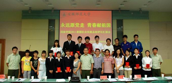 9月9日晚,国旅学院在院实验楼101教室隆重举行2011年暑期社会实践总结评比汇报会。学院党委副书记罗振和全体辅导员出席汇报会并担任评委,会议由辅导员张鑫老师主持。