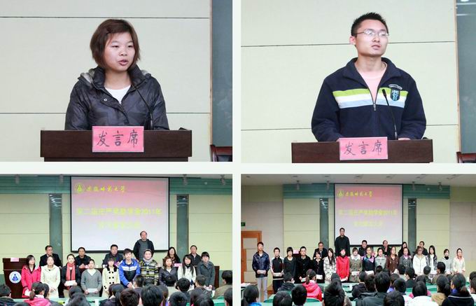 首届庄严奖助学金三年感恩回顾”的视频短片,重温庄严基金会首届三年来的大善义行。接着,校学生处副处长李娟宣读了《第二届庄严奖助学金2011年获奖受助学生名单》,获奖、受助学生代表相继发言。随后,奖学金和助学金获得者上台领取庄严奖助学金,并与领导嘉宾合影留念。庄严基金会代表庄明福先生发表了言简意赅、意味深长的讲话。他强调做慈善的理念:只想做事,不能作秀。基金会坚持不懈做慈善只有一个目的,就是希望通过自己的微薄之力把社会资源给予需要帮助的人,为社会做事情。同时,庄总表达了对所有受助学子的期望,希望他们能感恩社会、回报社会。一番朴实真诚的话语展现了一名成功企业家对贫困大学生的鼓励与关爱,现场的每一位获奖受助学子都为之深深感动。
