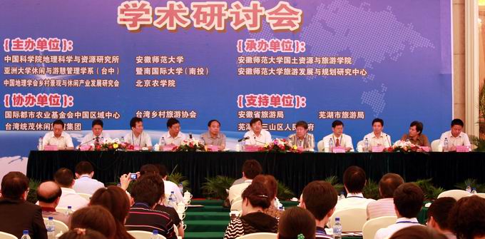 旅游发展与规划研究中心承办的2011年海峡两岸都市农业与乡村休闲产业学术研讨会于8月14日至15日在我校举行。来自台湾地区暨南国际大学、亚洲大学、东海大学、辅仁大学、台湾师范大学、景文科技大学、树德科技大学及有关学术团体、行业协会、企业和内地有关大专院校、科研院所、行业协会、出版社及企业等42家单位共计140余位代表参加了会议。